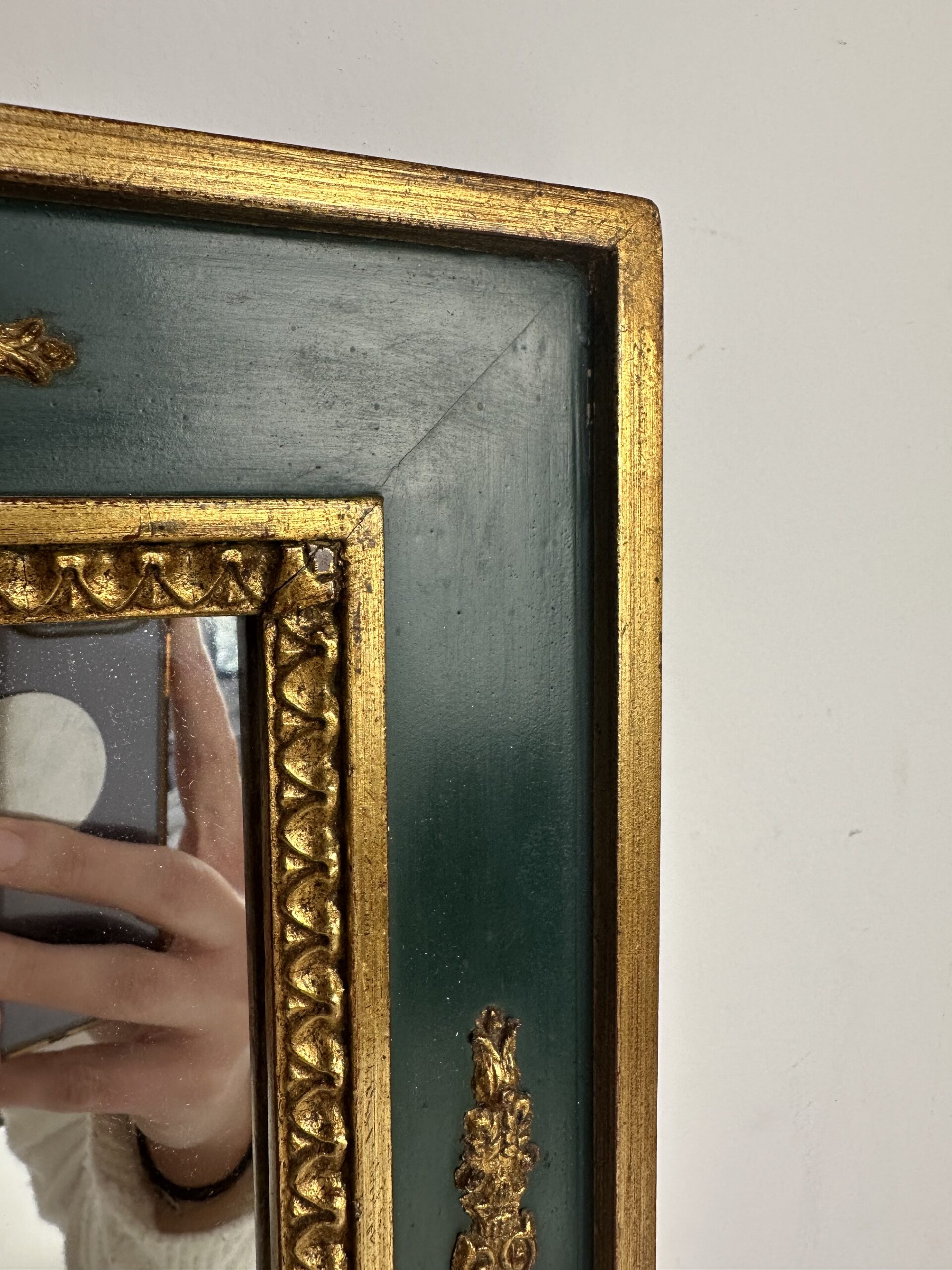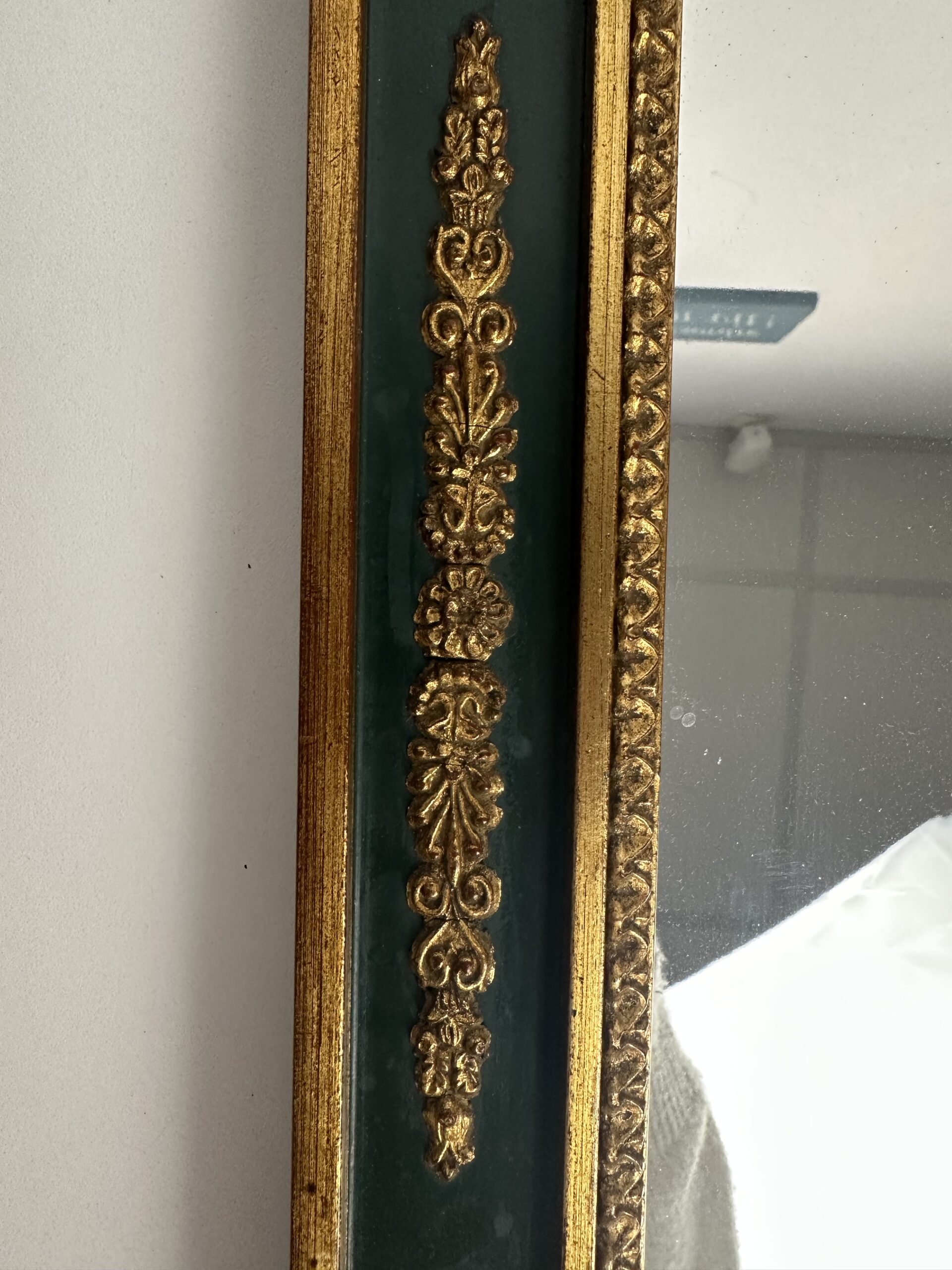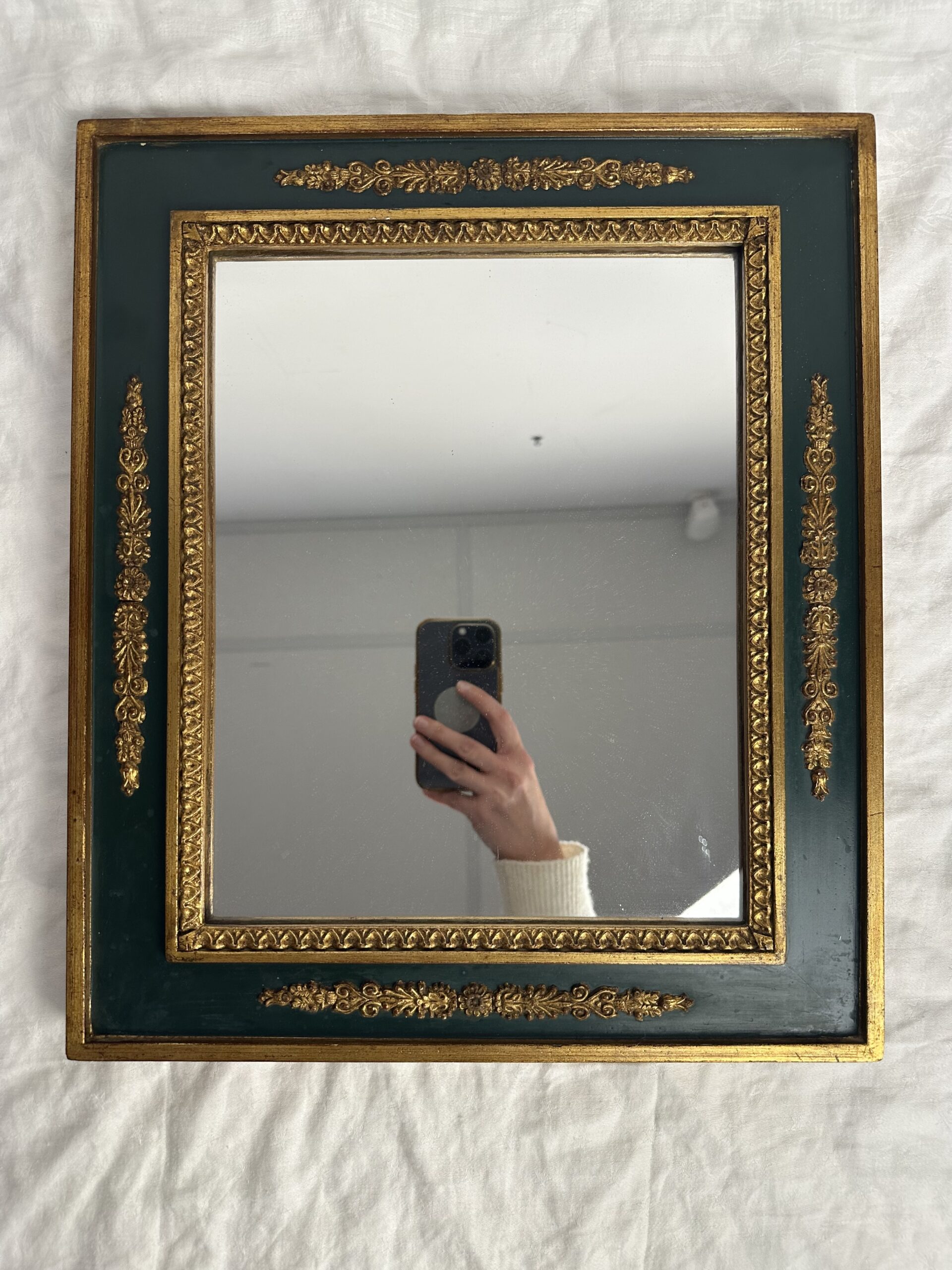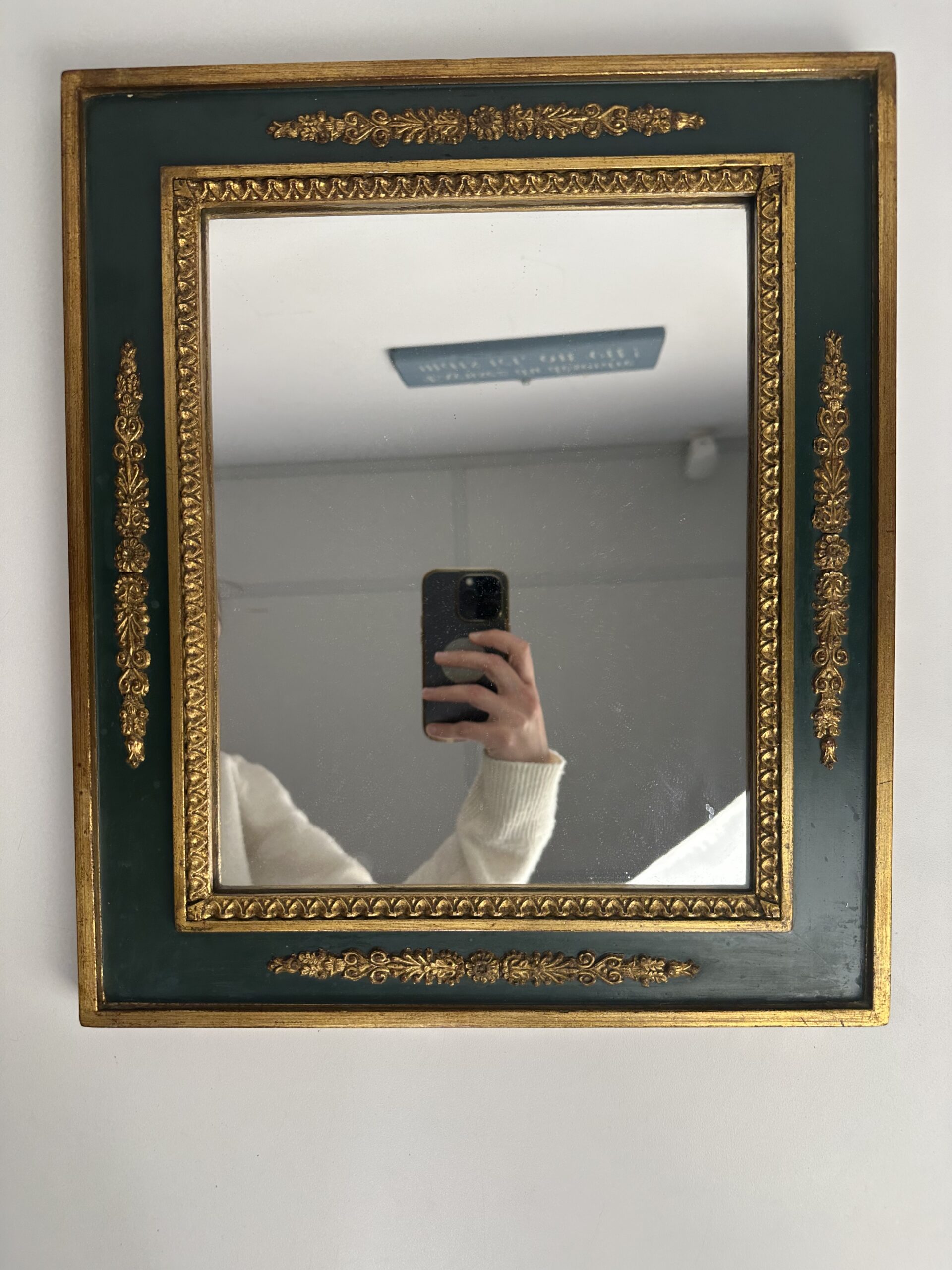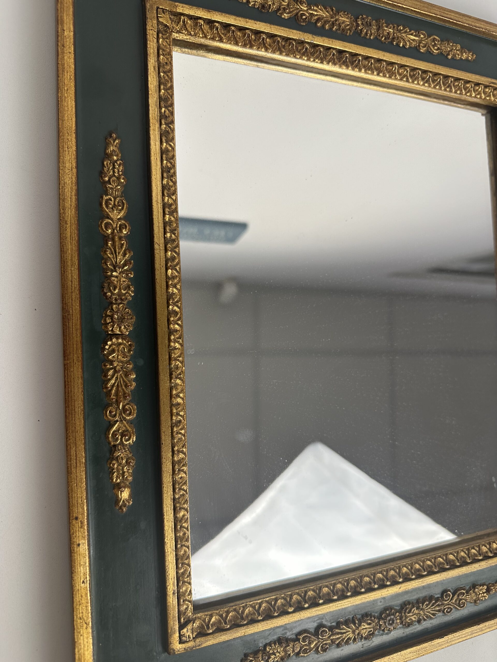 Amateurs et chineurs de décoration ancienne, craquez pour ce miroir ancien style Empire vert et doré.