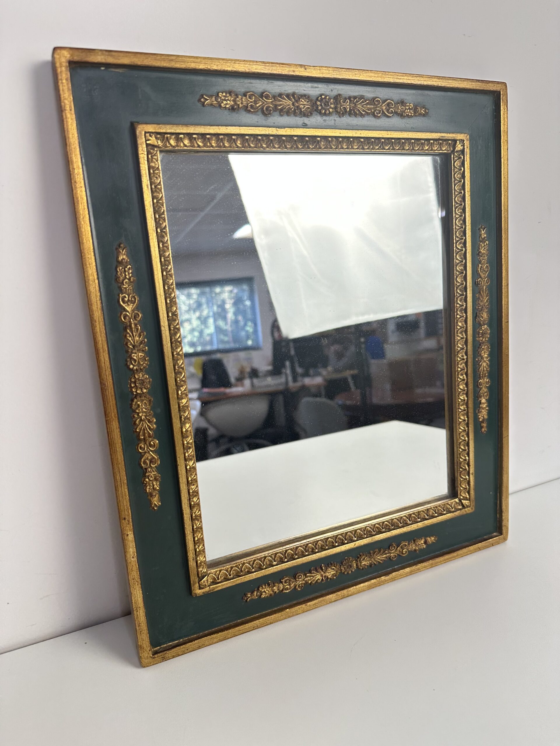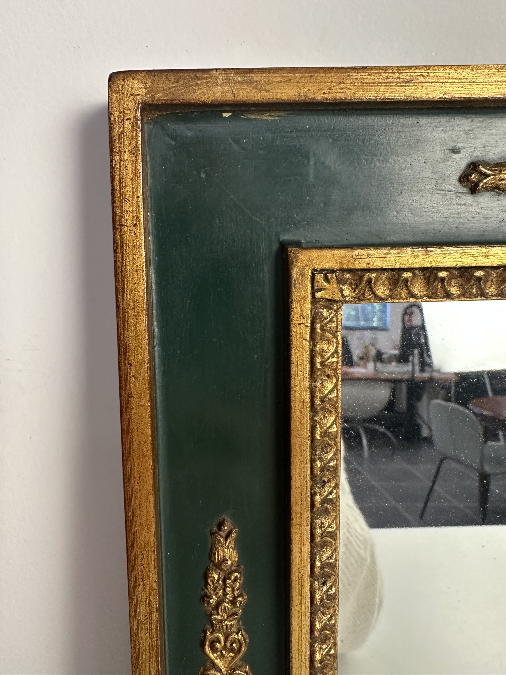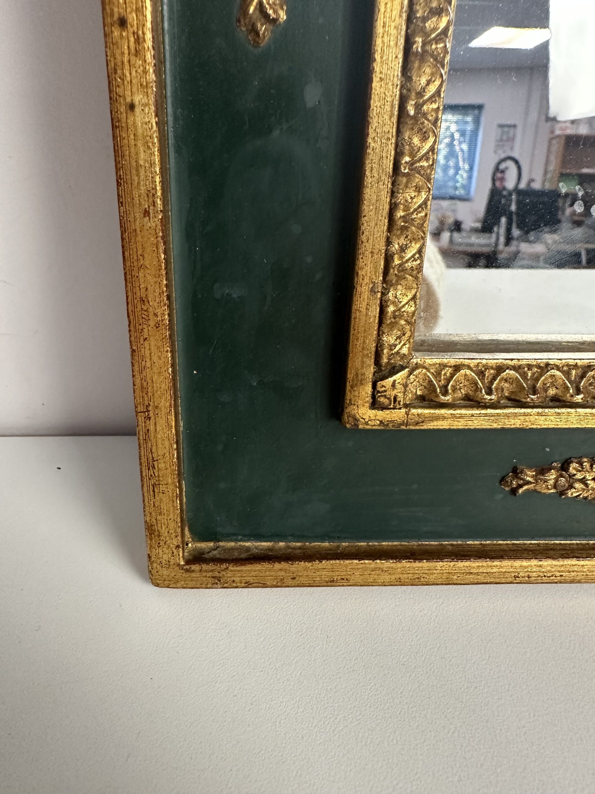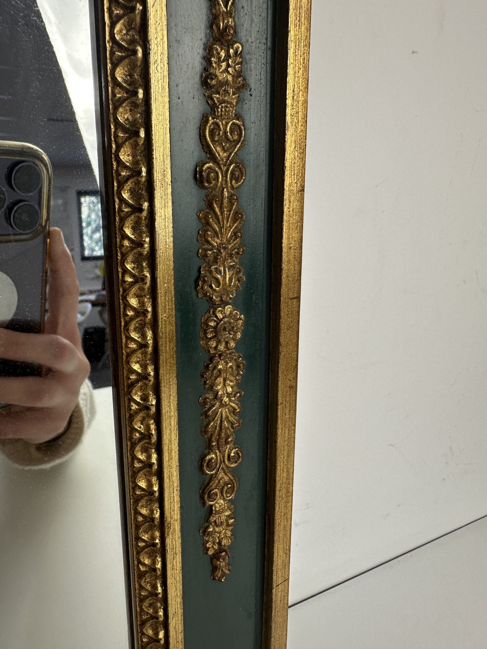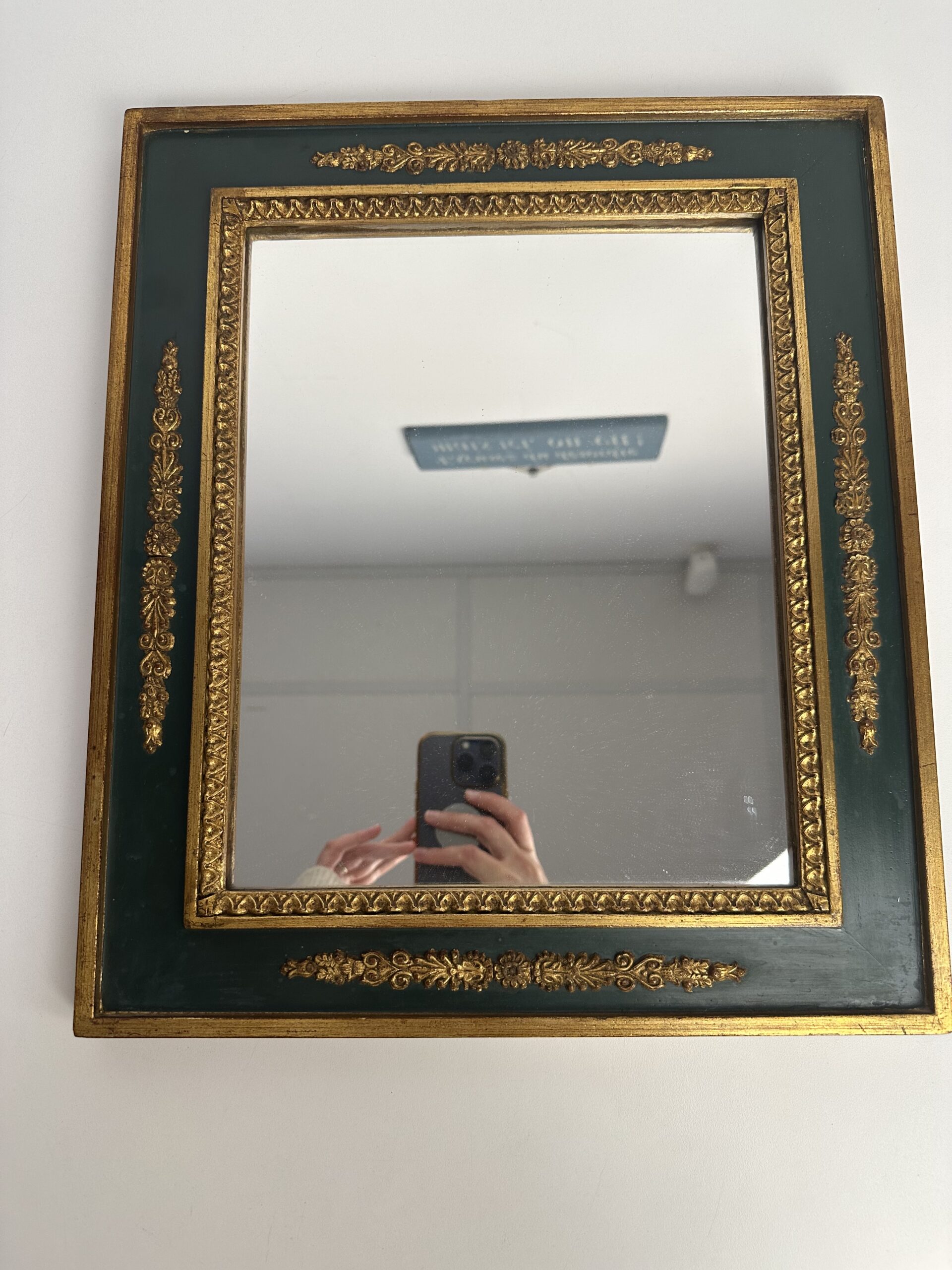Amateurs et chineurs de décoration ancienne, craquez pour ce miroir ancien style Empire vert et doré.