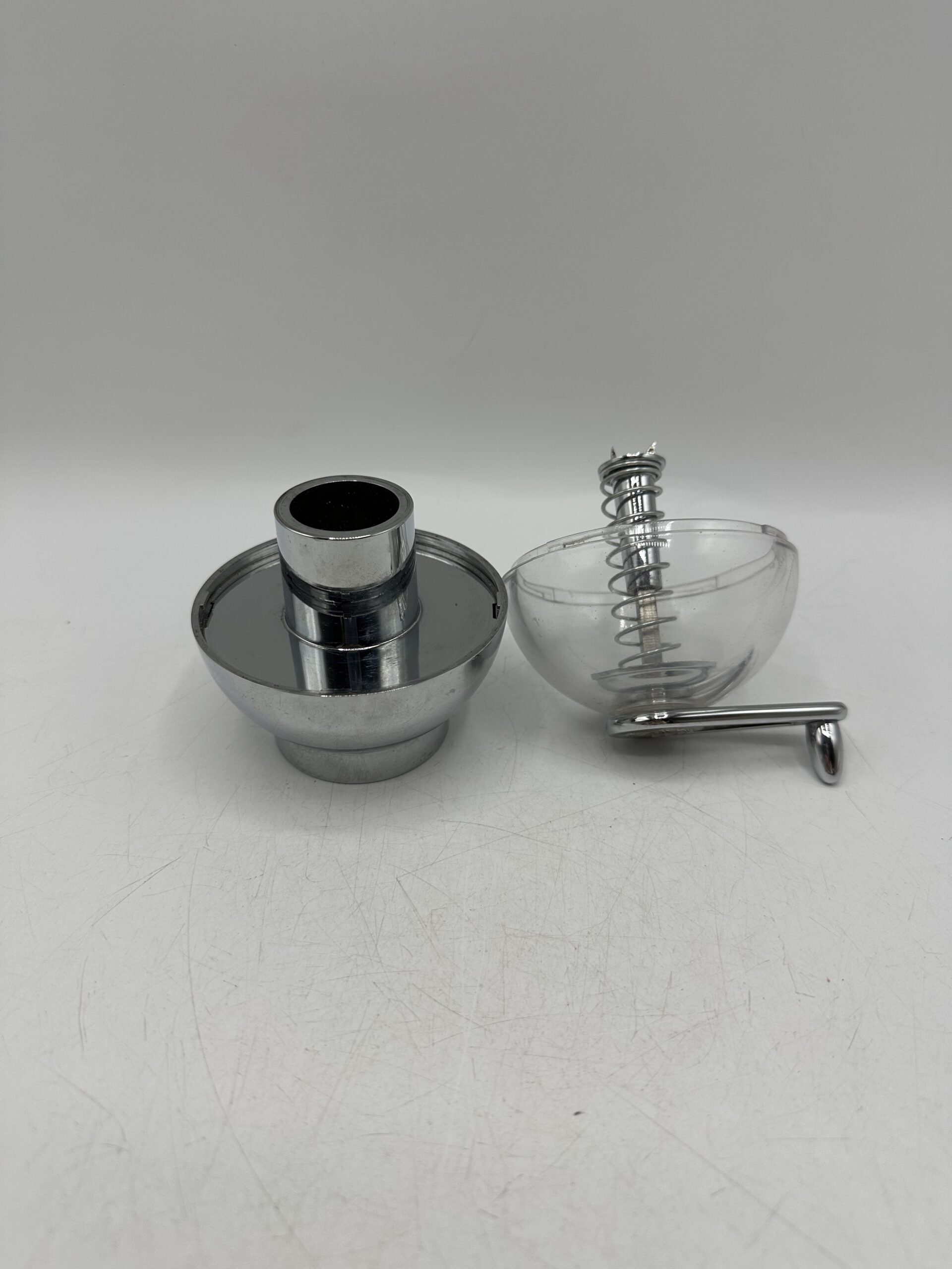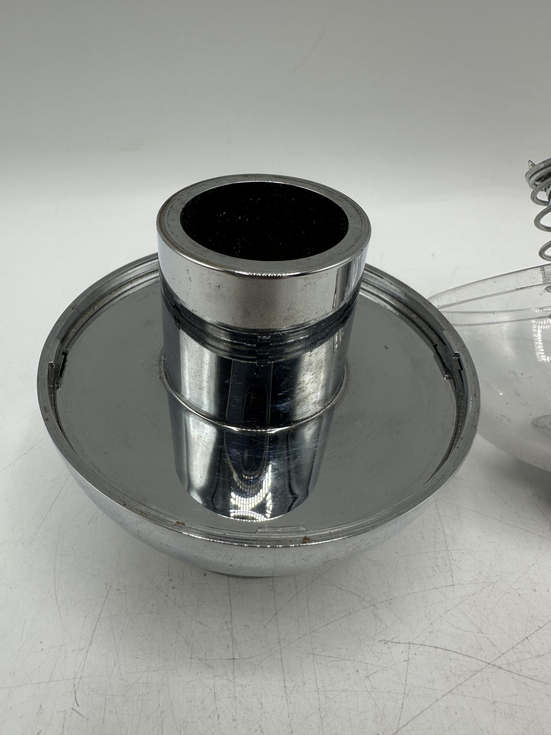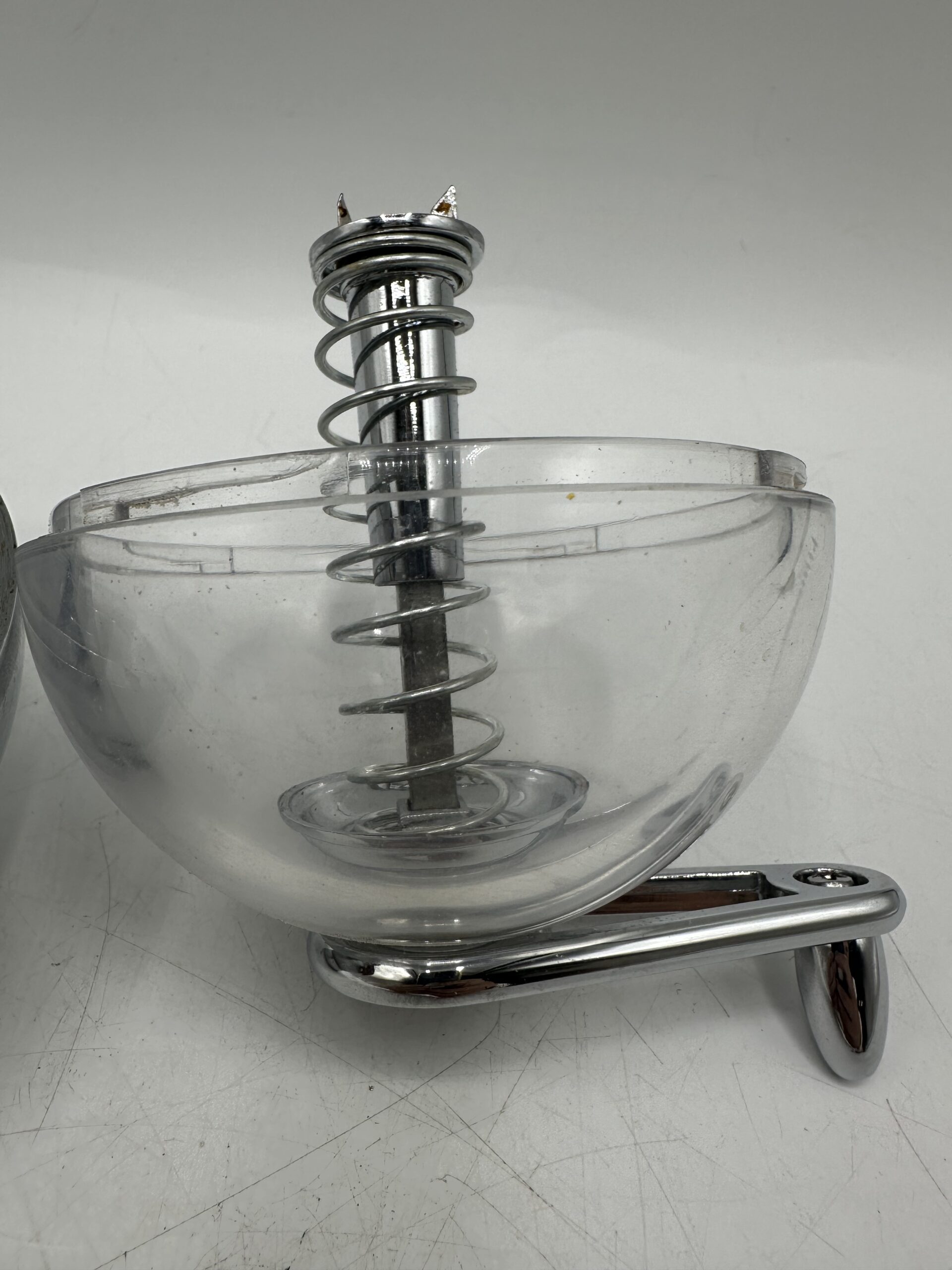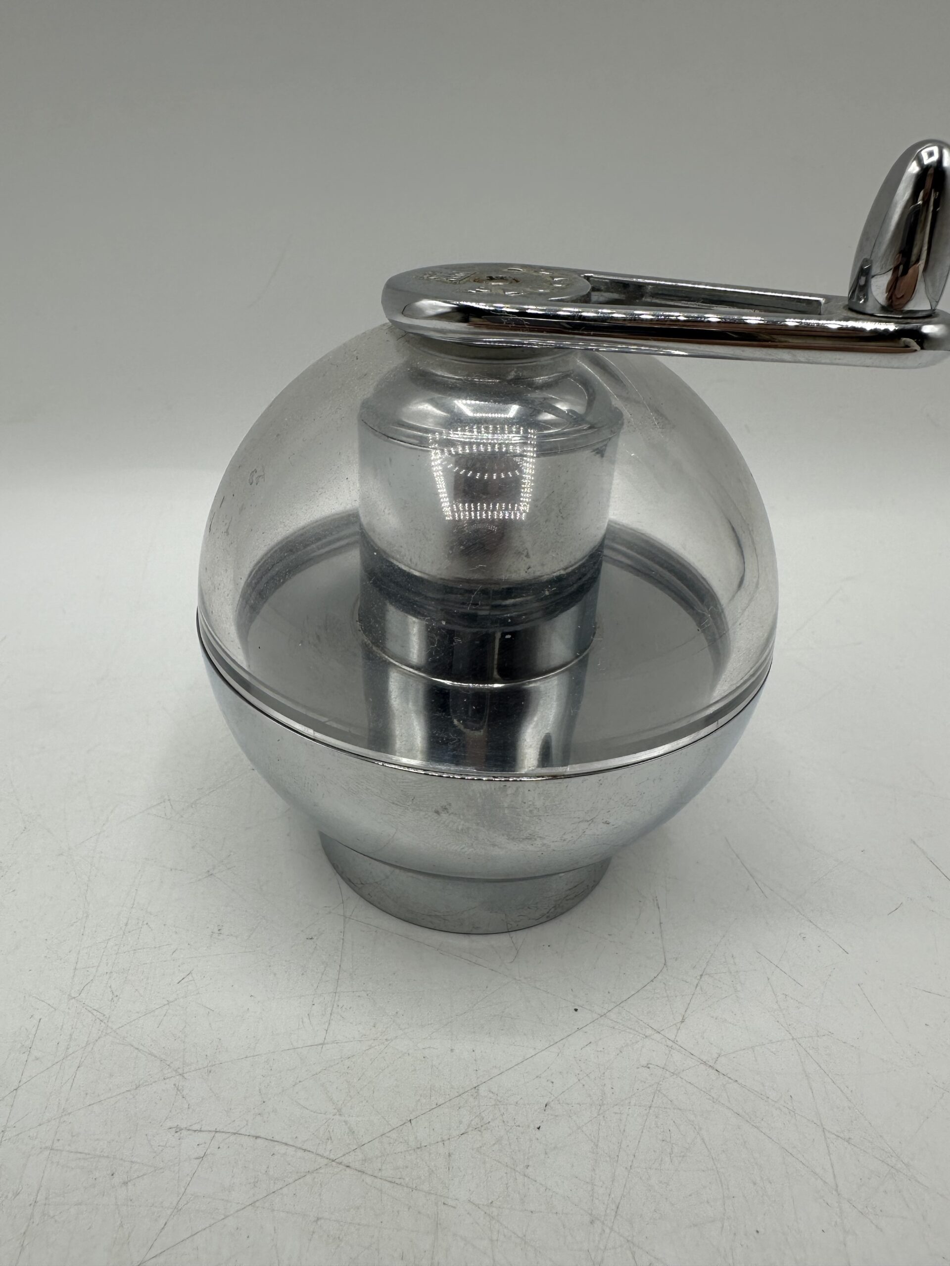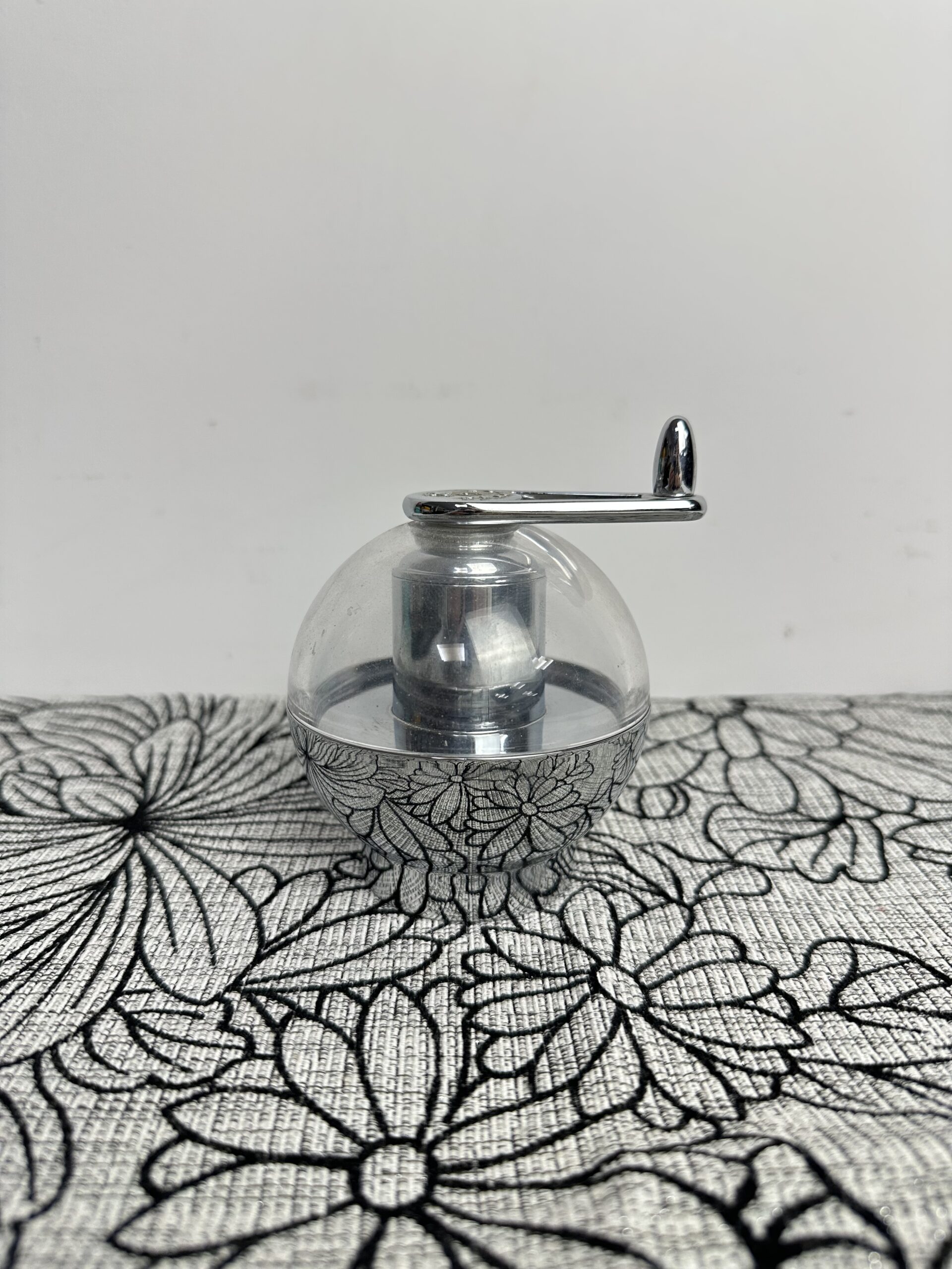 Transparent et argenté, il affiche ce look rétro si typique de son époque ! Il est en bon état général, il fonctionne parfaitement et présente seulement de légères traces d’usage (voir photos).