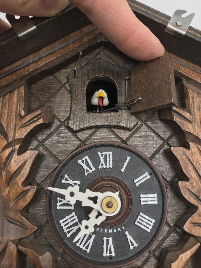 Pendule coucou vintage. Pendule suisse vintage. Bel objet de décoration rustique et chaleureux. Il est décoré des feuilles sculptées dans le bois. Le petit oiseau dis « coucou » est bien là. Le tout est en bon état. Il est vendu en l’état, je ne m’y connais pas sur le fonctionnement de ce mécanisme mais le coucou fait bien le bruit de sort bien de sa cachette. Amateurs de déco insolite, cette pendule pourra donner la dernière touche vintage a un chalet ou une résidence secondaire. Le mélange des styles peut aussi bien matcher.