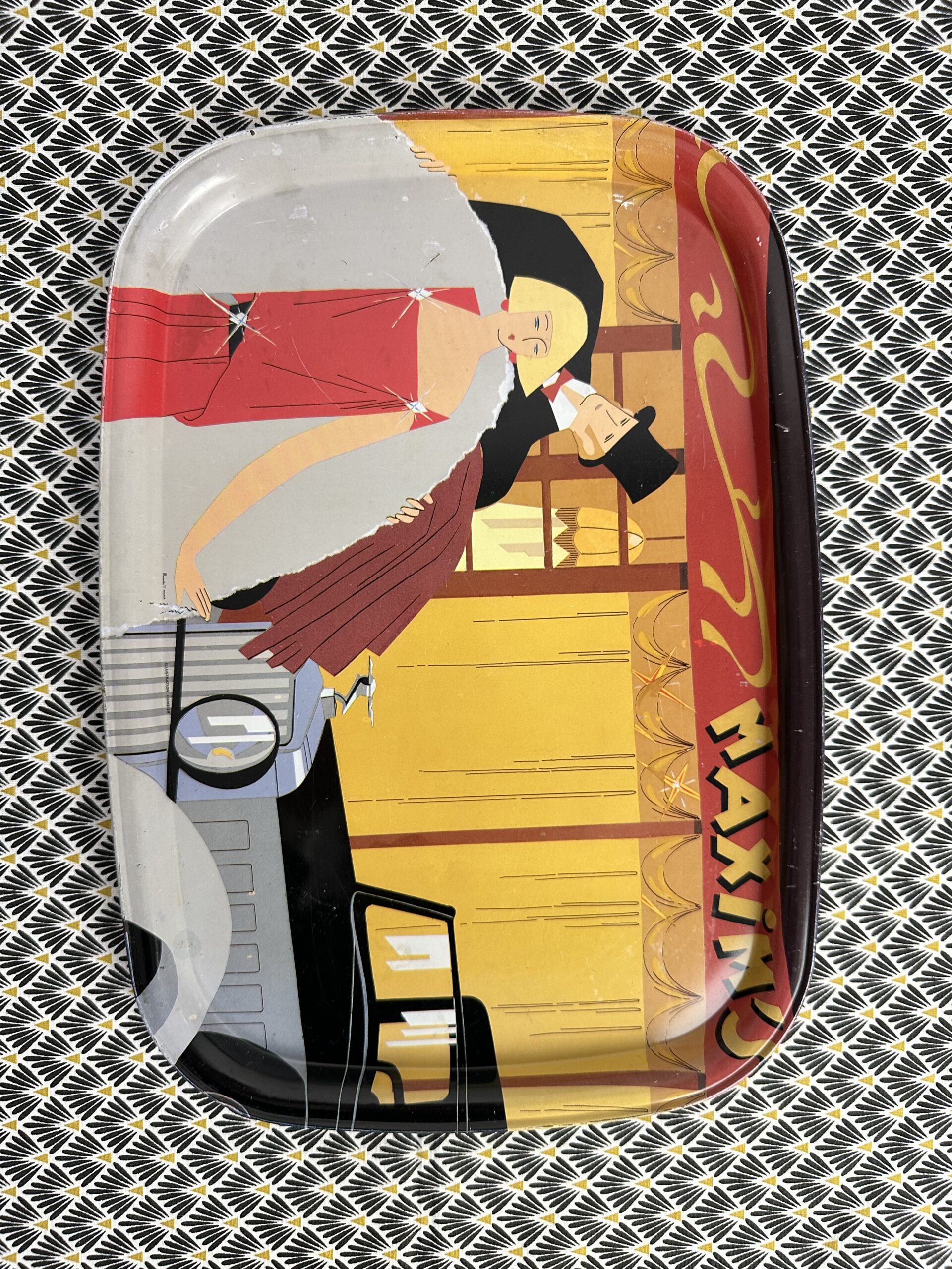 Alors si vous collectionnez les objets et vaisselle Maxim’s, foncez pour adopter ce plateau vintage Maxim’s métal.