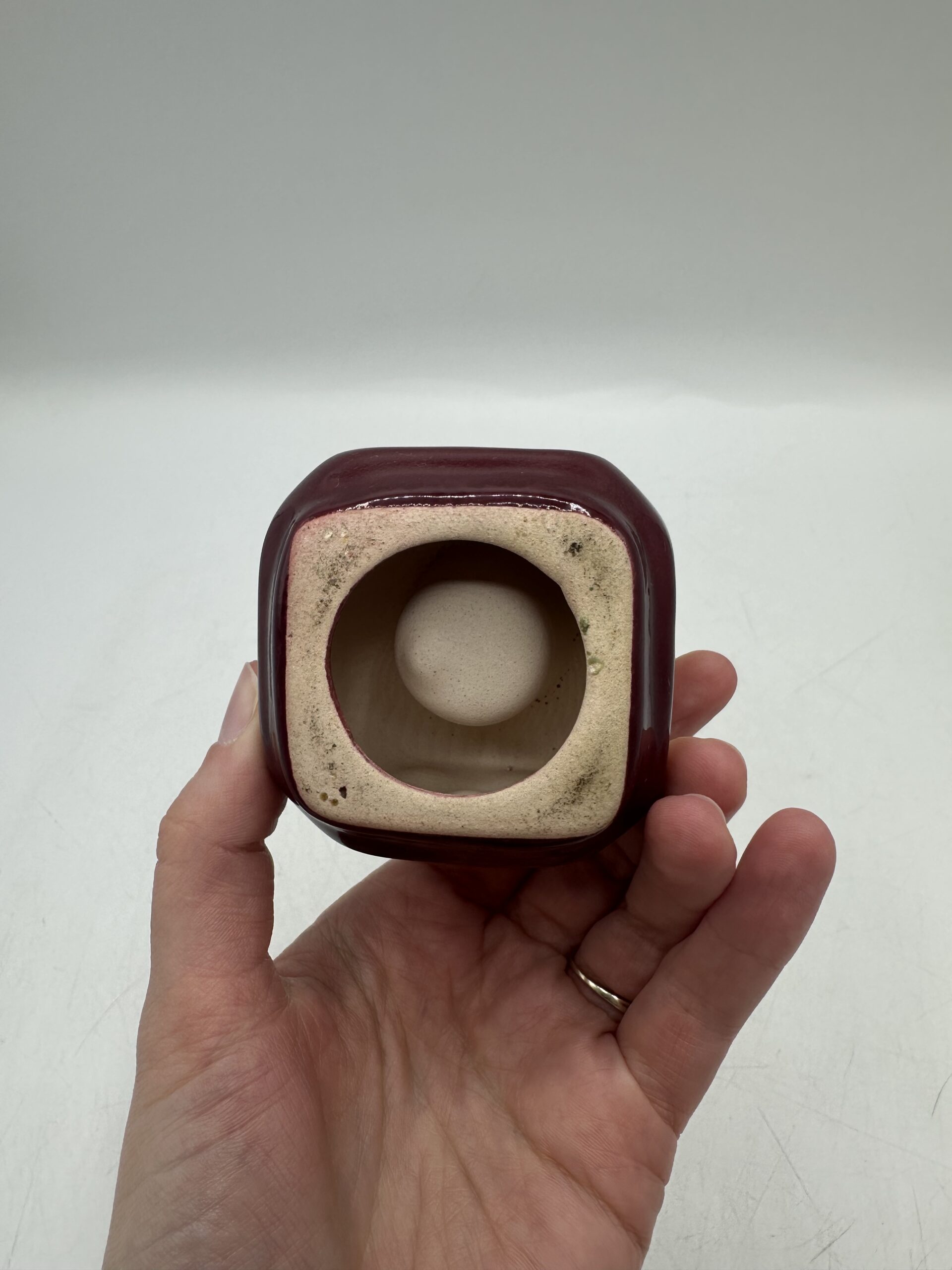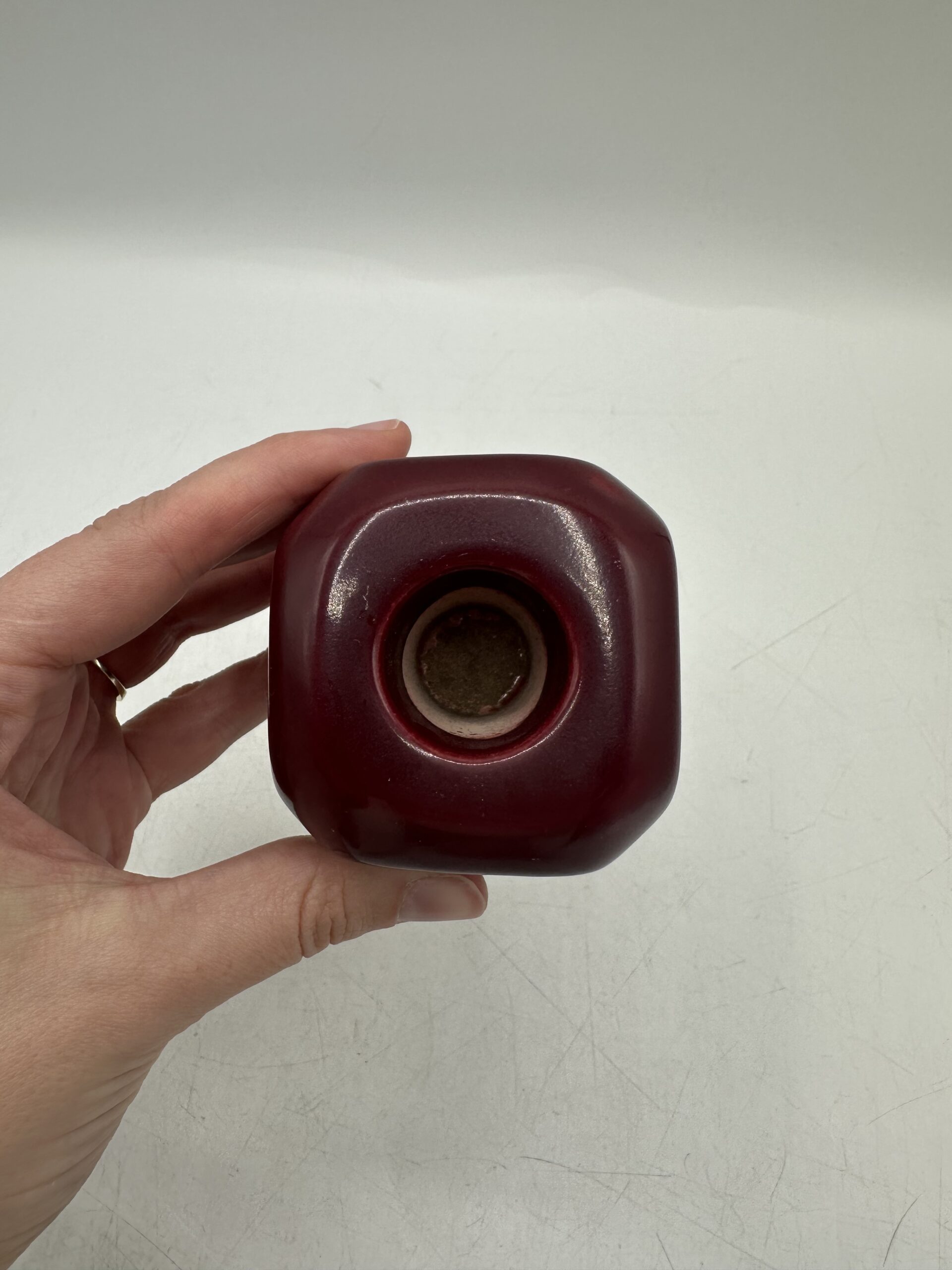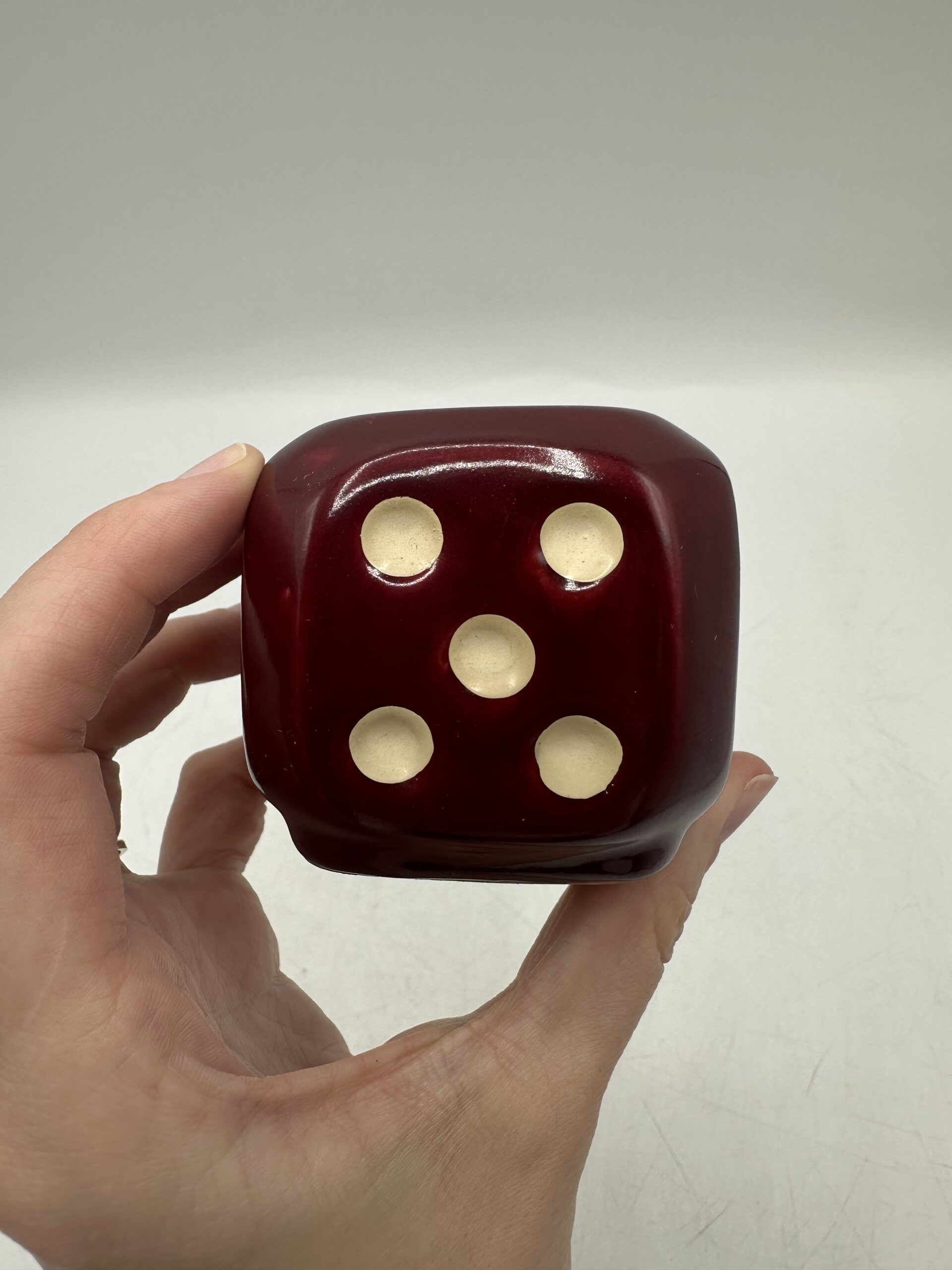 Ce dé vintage en céramique permet d’y ranger des pique à escargots ou pour l’apéritif. IL est en bon état général, avec des petites traces d’usures normales. Le dé est en céramique rouge bordeaux. Avec, il y a 14 piques colorés. Ils présentent eux aussi des marques d’usures normales.