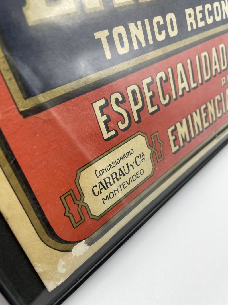 Ce joli poster est une ancienne pancarte publicitaire pour un tonique médicinal de la marque italienne Amaro Larga -Vida. Écrit en espagnol, le panneau publicitaire rouge est décoré avec les dessins des médailles obtenues par le produit et la marque. Sous verre, le panneau présente quelques traces d’usure (cf photos) jolies marques du temps passé. Vous pouvez accrocher ce panneau dans votre intérieur ou bien changer de cadre pour lui donner un aspect encore lus vintage ! Une jolie touche de rétro pour votre maison !