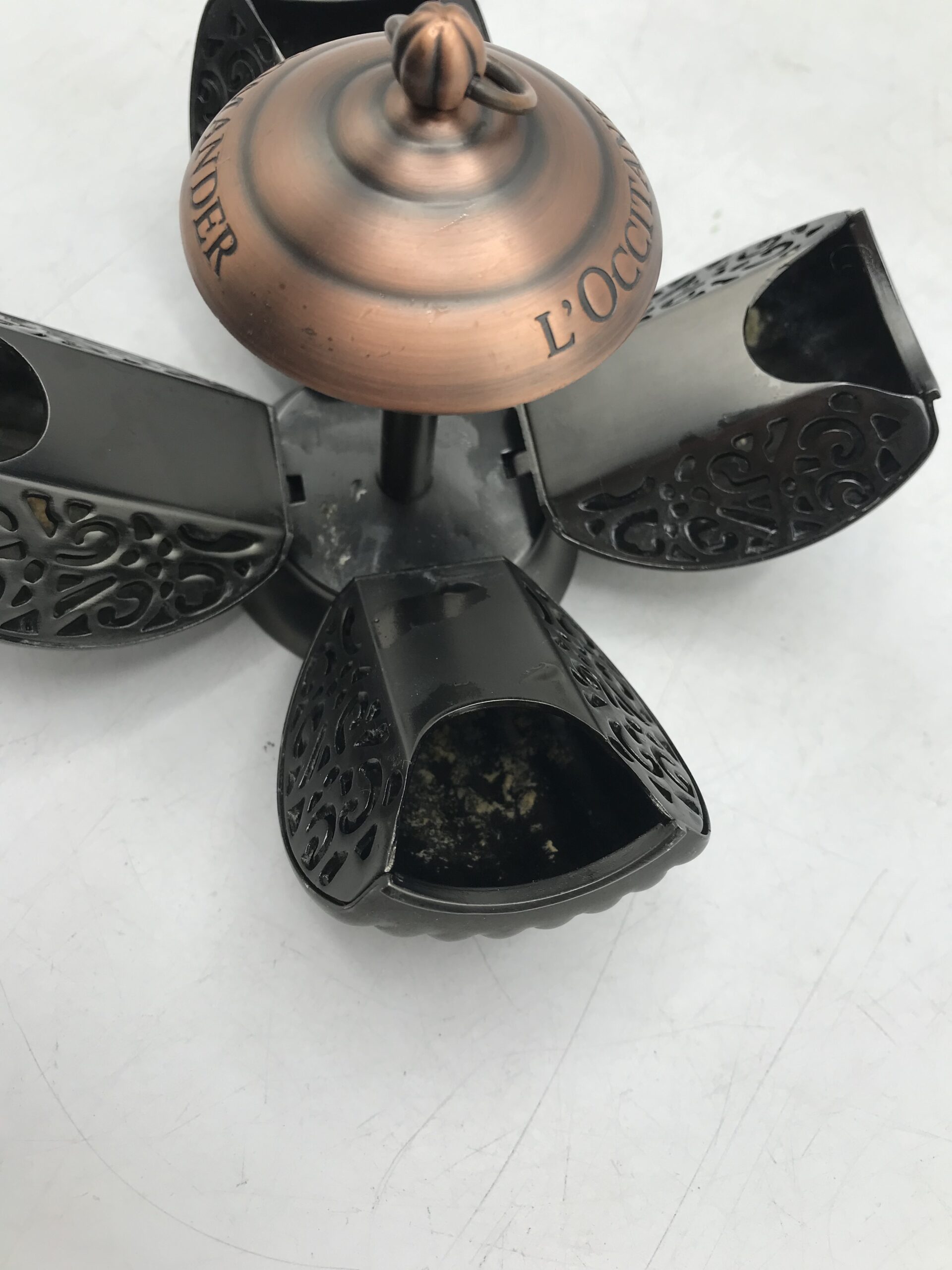 Pot pourri L’occitane. Superbe pot pourri signé L’occitane. Ce pot pourri est vraiment joli et gracieux. Un très bel objet de déco à part entière. Il se présente une fois fermé en forme de boule, on actionne son capuchon et là quatre compartiments s’ouvrent comme les pétales d’une fleur. Dans chaque compartiment, on peut placer des mélanges de pot pourri, fleurs séchées ou autre douceur olfactive. Un objet signé l’occitane Pomander. Il est dans un bon état général, mais un nettoyage sera nécessaire pour lui redonner toute sa superbe. Un petit objet joli, discret, utile, audacieux. Qui lui offrira une belle seconde vie.