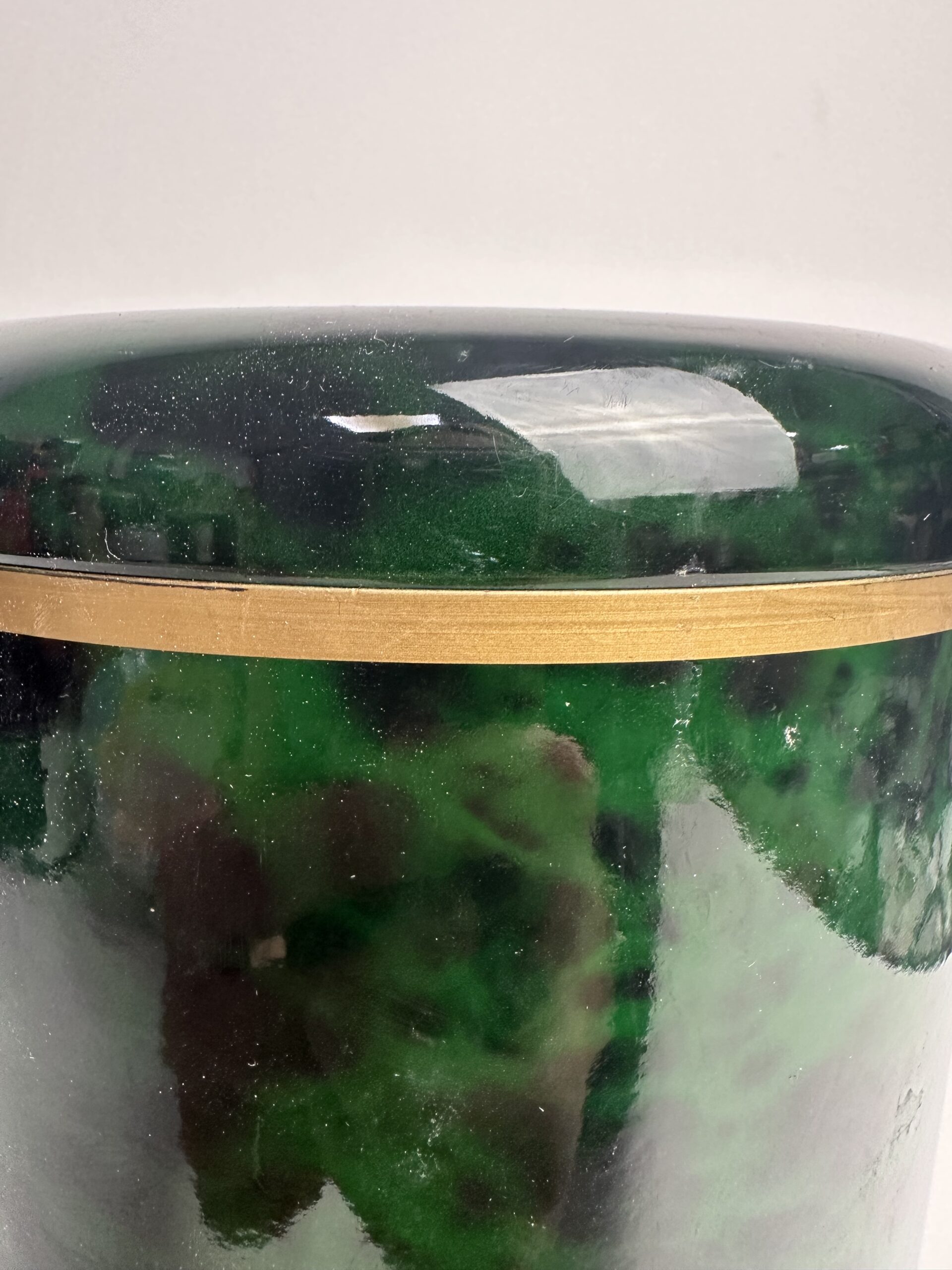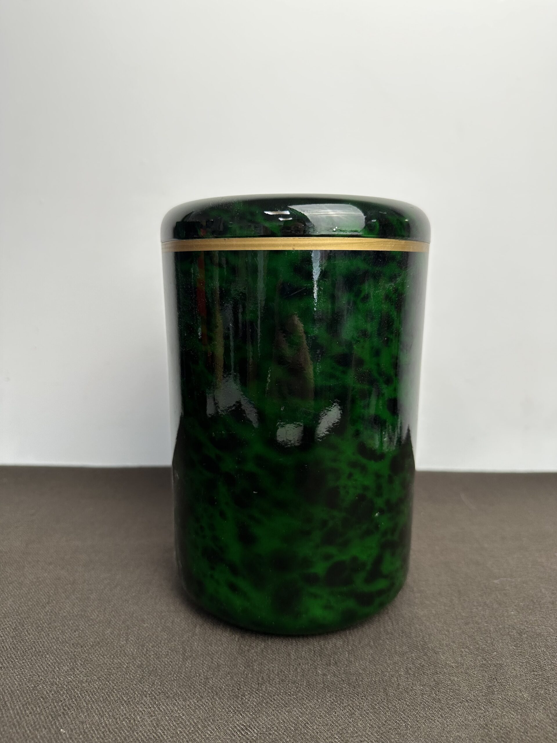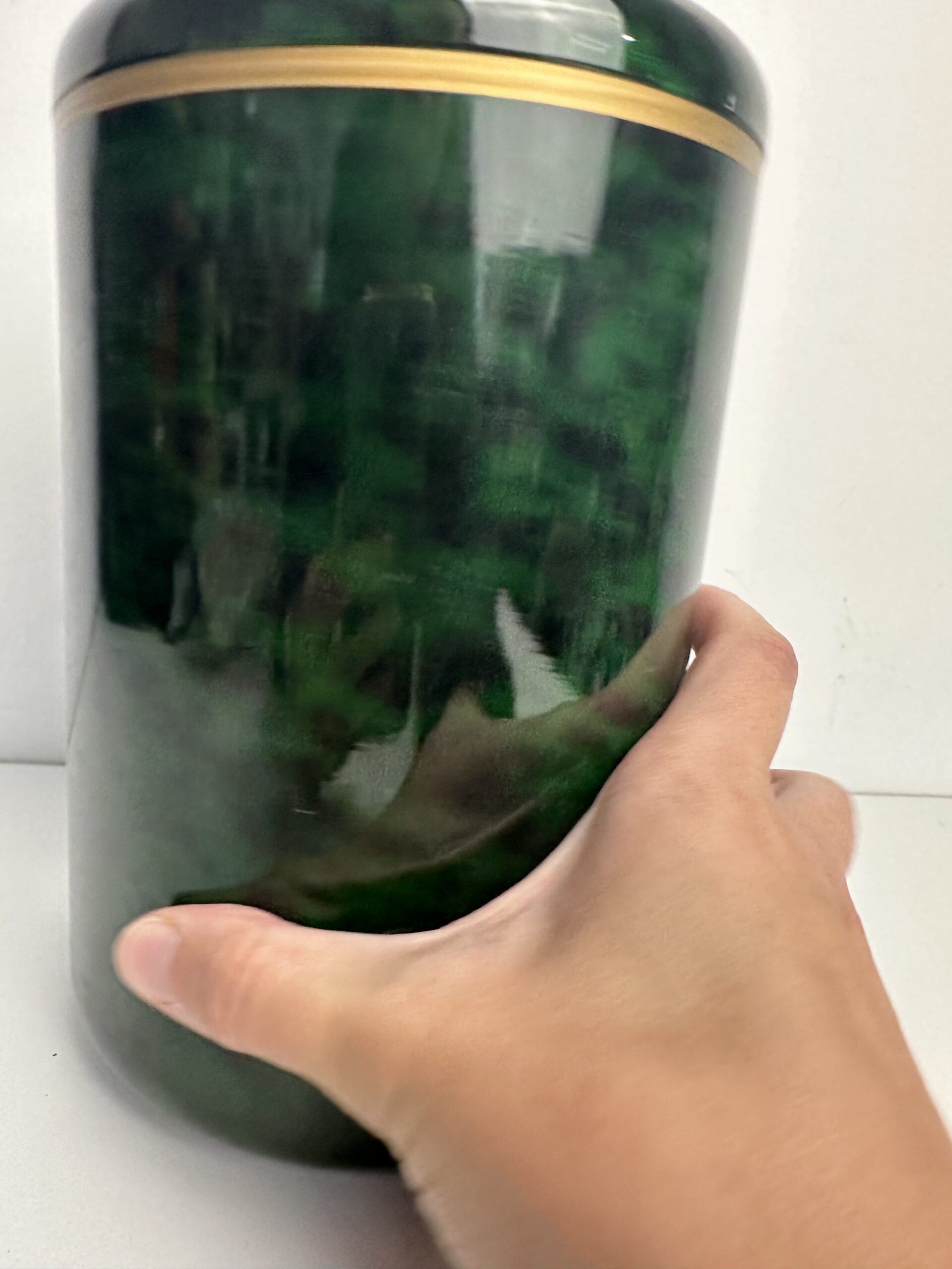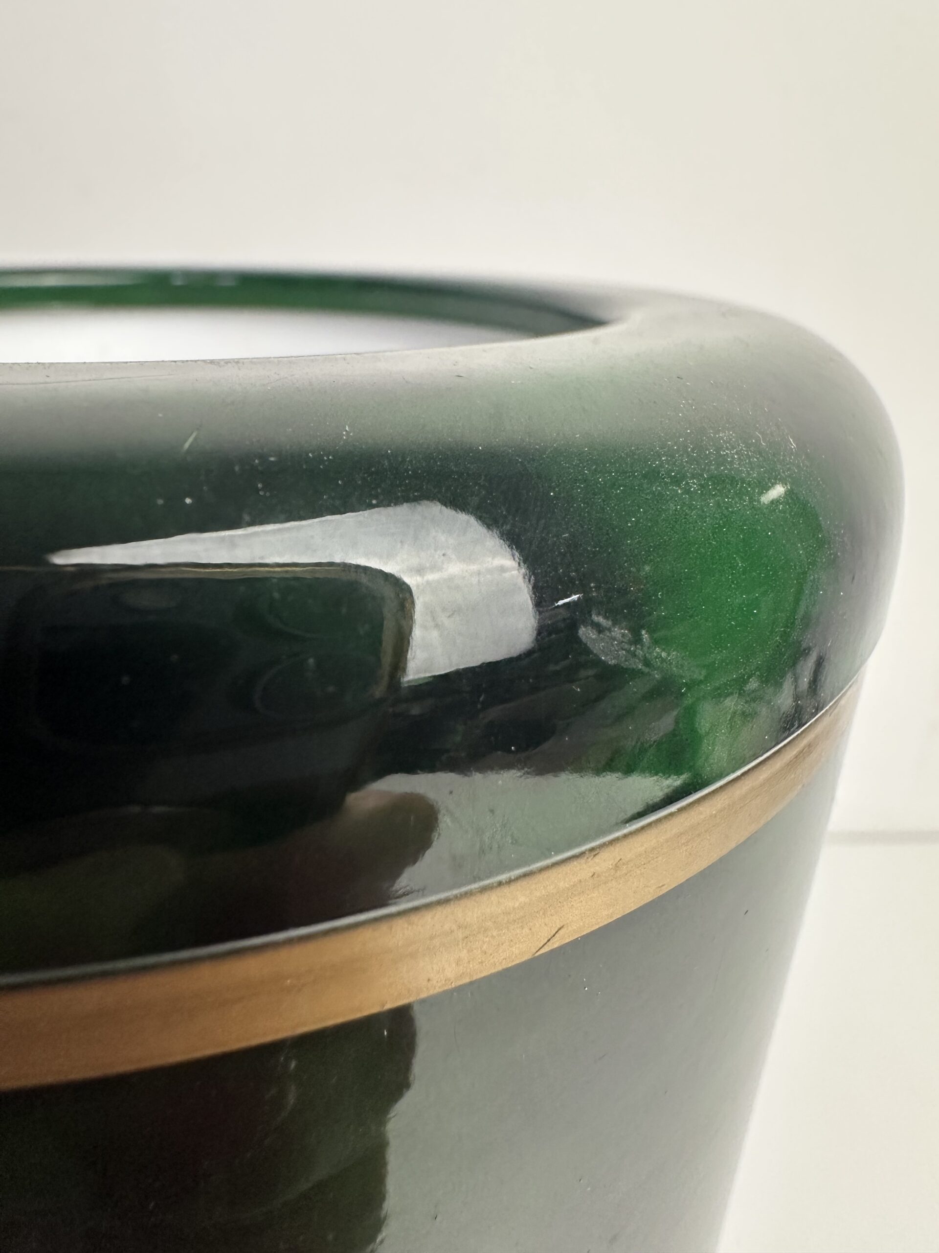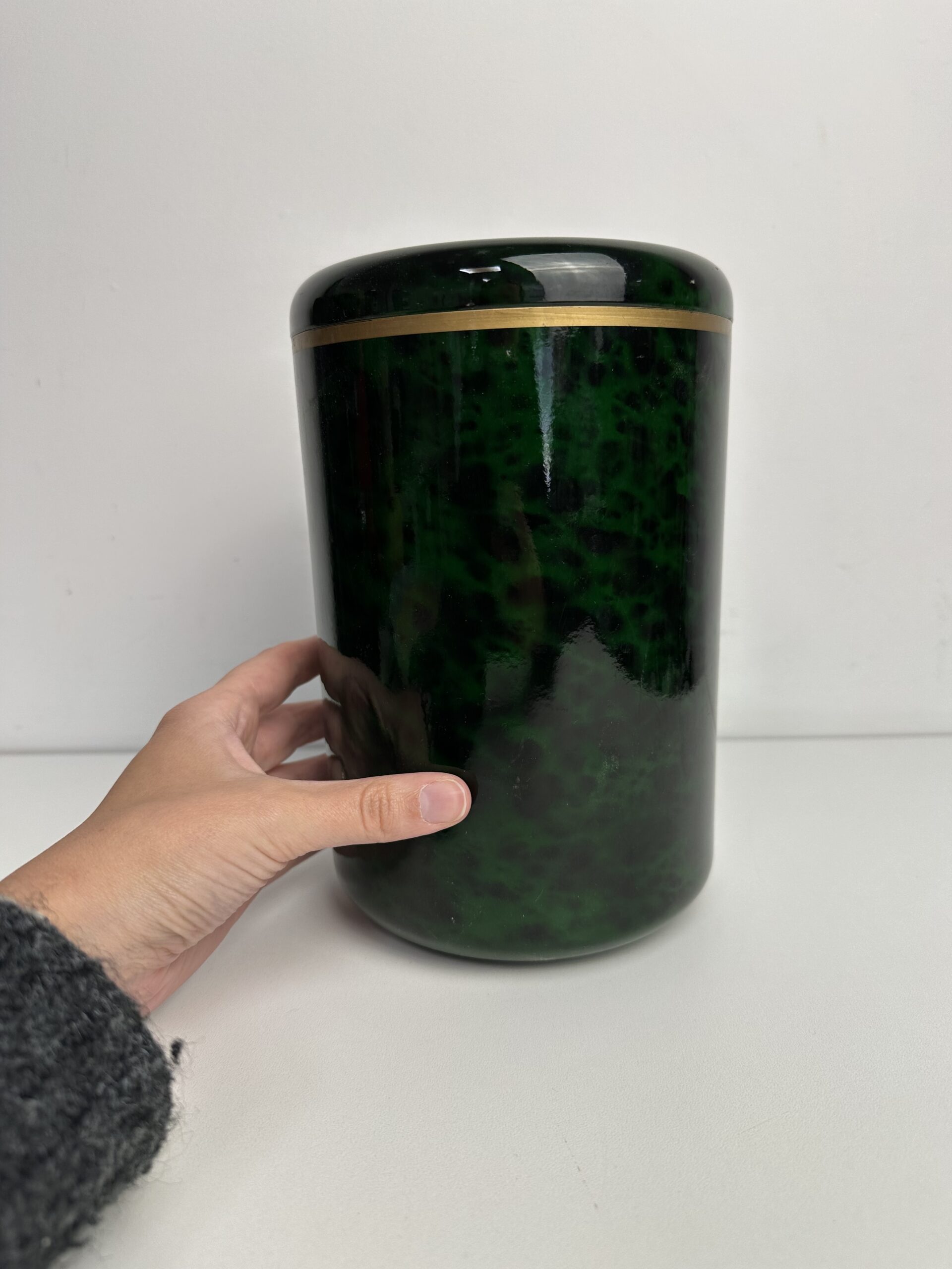 Il a une très jolie teinte verte avec des nuances ainsi qu’un liseré doré. Une pièce qui incarne le chic intemporel des accessoires de bar vintage. Il peut aussi être utilisé comme seau à glace ou pot de décoration
