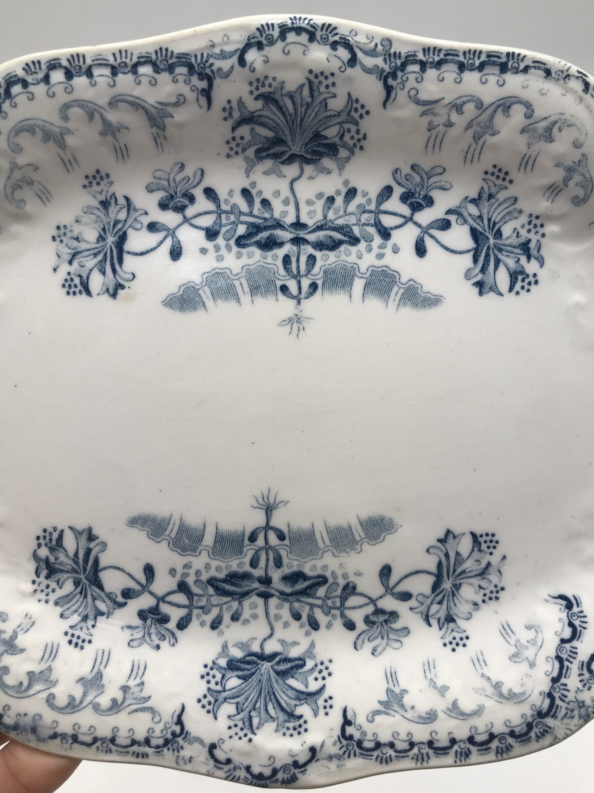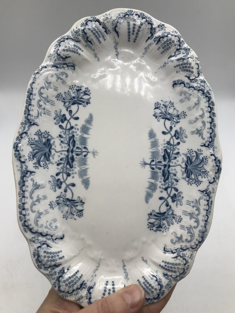 Ravier Terre de fer collection « Régence » St Amand. Superbe pièce de vaisselle, très joli ravier de taille 24 x 16 x 2 cm. Un petit ravier très élégant et fin qui pourra facilement servir de vide poche. Il peut apporter sa finesse aussi au moment du café pour y déposer quelques gourmandises. Un seul mot le représente le raffinement. D’une bleu magnifique on y voit des décors floraux. Laisse vous séduire par le charme de l’ancien. Il est en bon état un petit éclat à l’arrière mais rien de gênant.
