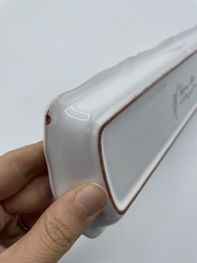 Ce repose cuillère en faïence vintage est estampillé Faïences d’hier et d’aujourd’hui tradition Moustiers. De couleur blanche, le repose cuillère est décoré de motifs de fleurs des champs bleues et d’un liseré assorti. Vintage, des traces d’usure et éclats sont à prévoir (cf photos) jolies marques du temps passé. Ce joli repose cuillère apportera une petite touche de vintage,champêtre et de shabby chic à votre cuisine ou à votre entrée transformée en vide poche.