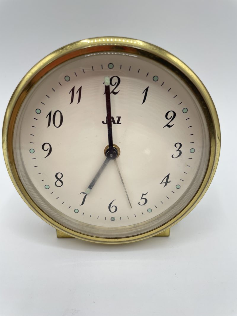 Vendu en l’état, ce petit réveil vintage a voyagé dans le temps ! Tout en métal doré, ce réveil a besoin d’être remonté et d’avoir une nouvelle pile pour fonctionner correctement. Quelques traces d’usure sur la vitre sont à prévoir (cf photos), jolies marques du temps passé.