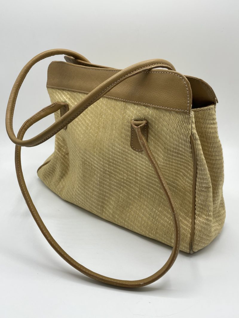 Joli sac à main en paille de couleur beige. De la marque « Native » ce joli sac à main se porte à l’épaule ou à la main. Les fermetures éclair sont en parfait état. A l’intérieur du sac il y a 2 grands compartiments, 1 étui à téléphone intégré ainsi qu’1 petit crochet pour organiser vos affaires et ne jamais rien perdre ! Quelques traces d’usure sont à prévoir (cf photos) jolies marques du temps passé. Avec son look estivale et ses finitions en simili cuir naturel, ce petit sac sera parfait pour vous accompagner tout l’été.