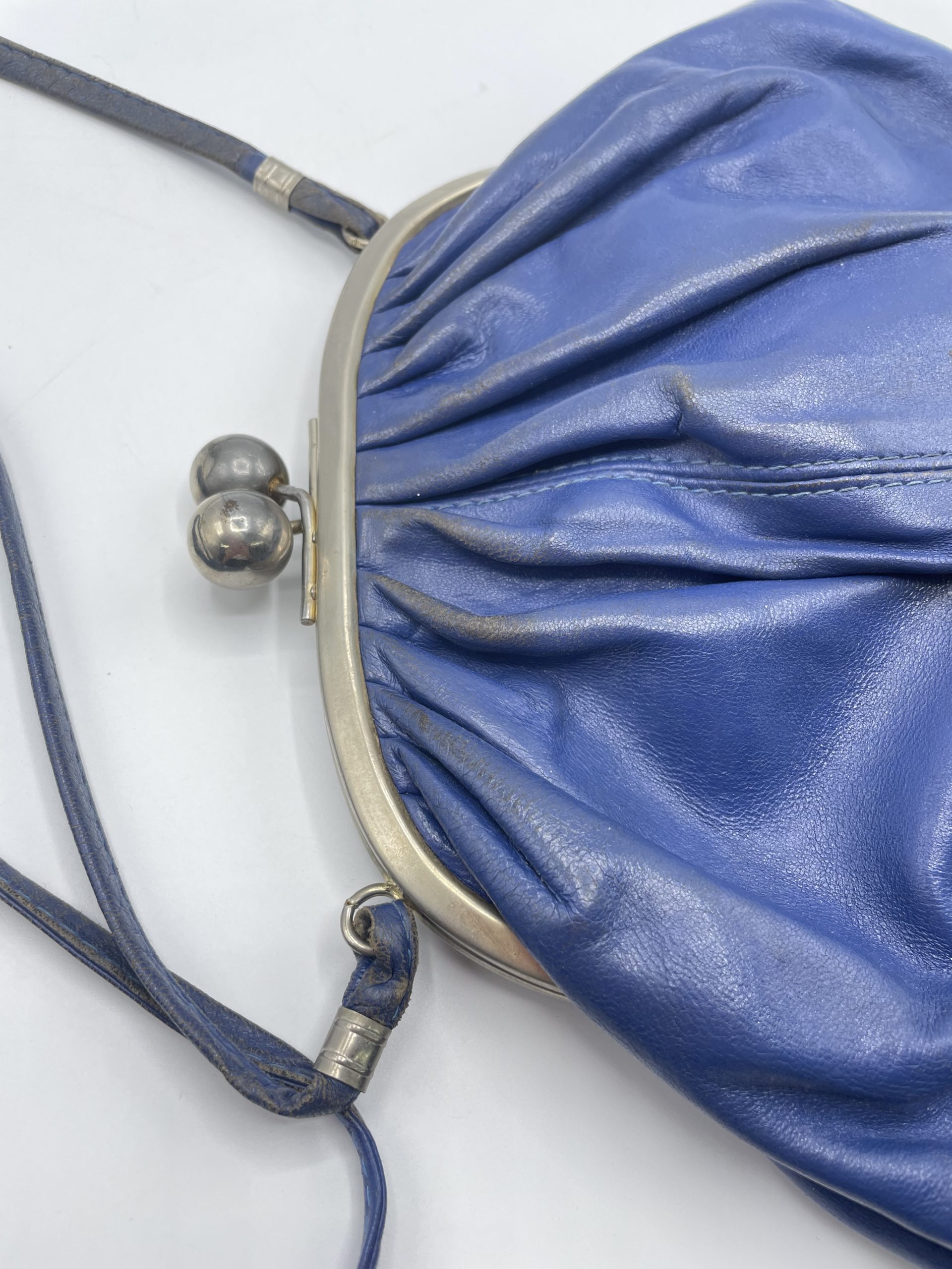 Ancien petit sac à main minaudière style petite pochette en cuir bleu. A la fois pratique et élégant, ce petit sac à main se ferme grâce à son système de clip basculant vintage. Le sac présente de nombreuses traces d’usure (cf photos) jolies marques du temps passé, mais l’intérieur du sac est en parfait état. Avec sa lanière, il peut se porter à l’épaule ou en bandoulière. Petit accessoire de mode qui vous accompagnera de partout et qui a encore de beaux jours devant lui !