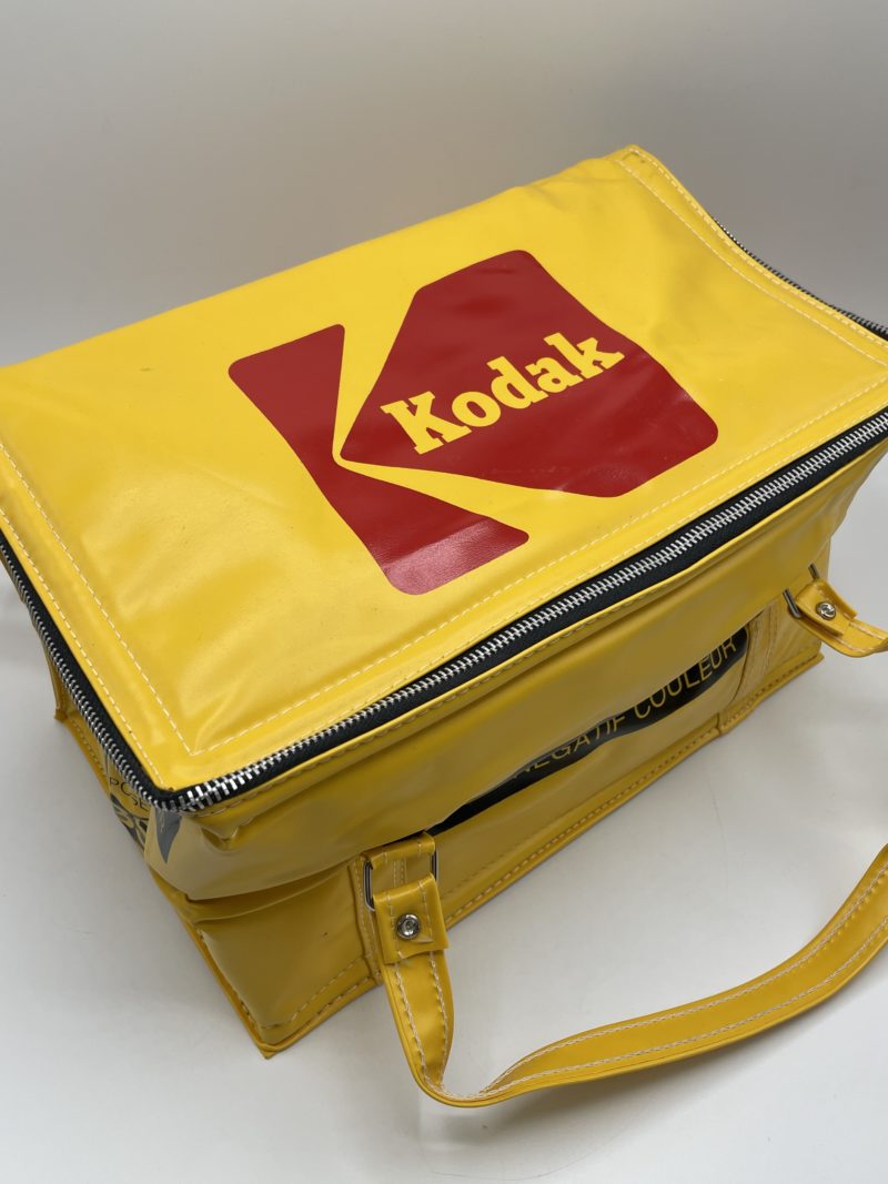 On craque pour ce sac vintage et isotherme, produit publicitaire de la célèbre marque d’appareil photo Kodak. La sacoche est estampillé « Kodak Vericolor II Professional Film » et elle rappelle les formats des boîtes de pellicule du même nom. Datant des années 80, ce sac isotherme servait à la base pour ranger un boîtier photo, des objectifs et des pellicules. La fermetre éclair fonctionne parfaitement mais il faudra la graisser pour qu’elle soit plus optimale.Vous pouvez tout à fait réaménager l’intérieur avec de la mousse pour vos propres appareil photo ou bien détourner son utilisation de base pour l’amener avec vous au bureau, en vacances ou en pic-nic pour un style retro et fun !