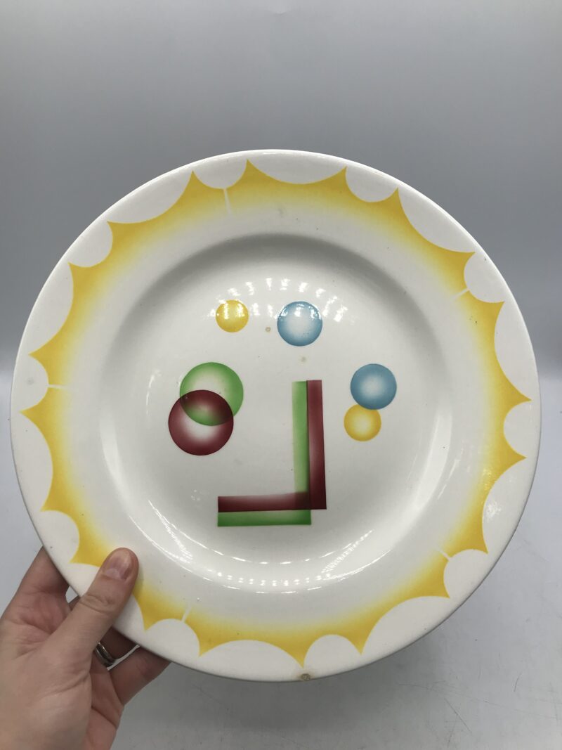 Service 3 pièces Sarreguemines « Planetes ». Ce service est composé de deux assiettes plates de grandes taille, et d’un plat creux. Les assiettes ont un diamètre de 27 cm pour une hauteur de 3 cm. Elle sont en bon état, une assiette à un petit éclat sur un bord. Les dessins ne sont pas usés. Le plat creux à un diamètre de 26 cm pour une hauteur de 5 cm, il porte une fissure (cf photos). Magnifique collection des années 60 avec des couleurs pétantes et des formes géométriques, Sarreguemines à su oser pour proposer quelque chose de différent à vous de savoir si vous êtes prêt.