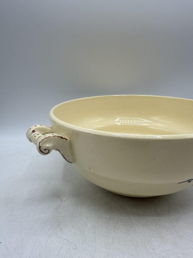 Les 3 pièces sont en parfait état, sans casse ni fissure. Le saladier montre un petit éclat sur le pourtour, la soupière 2 petits éclats et la plat 1 petit éclat sur le pourtour en dessous également.