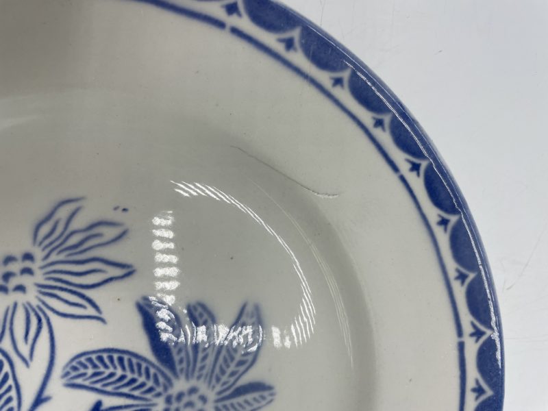 On craque d’amour pour ce beau service vintage qui se compose de 3 assiettes à dessert, d’1 assiette plate et de assiettes creuses. Estampillées Digoin Sarreguemines, les assiettes font partie de la collection Baléares. De couleur blanche, elle sont décorées d’un motif central de fleurs et d’une frise à motifs géométriques de couleur bleu qui rappellent l’esprit méditerranéen de îles Baléares. Vintage, des traces d’usure et des petits éclats sont à prévoir (cf photos) jolies marques du temps passé. Un beau service pour une table à l’esprit méditerranéen !