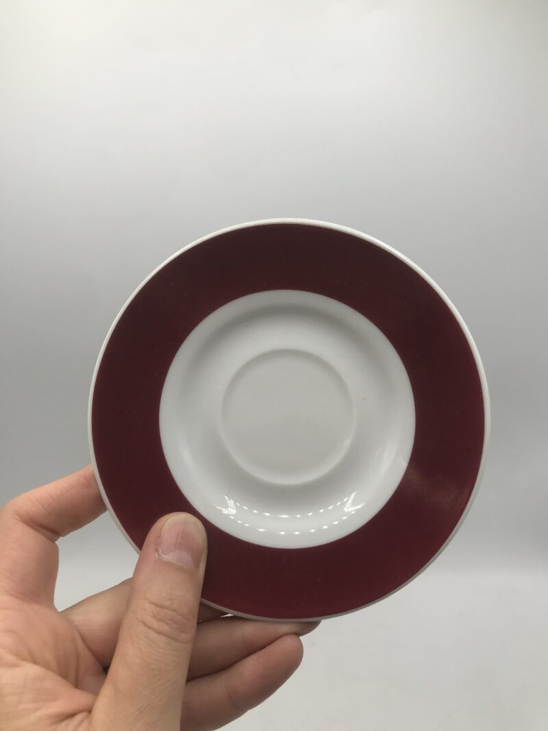 Elles sont décorées de dessins naïfs et très charmants. Les sous tasses ont un diamètre de 12 cm pour une hauteur de 2 cm, elles sont de couleur blanc et rouge bordeaux.