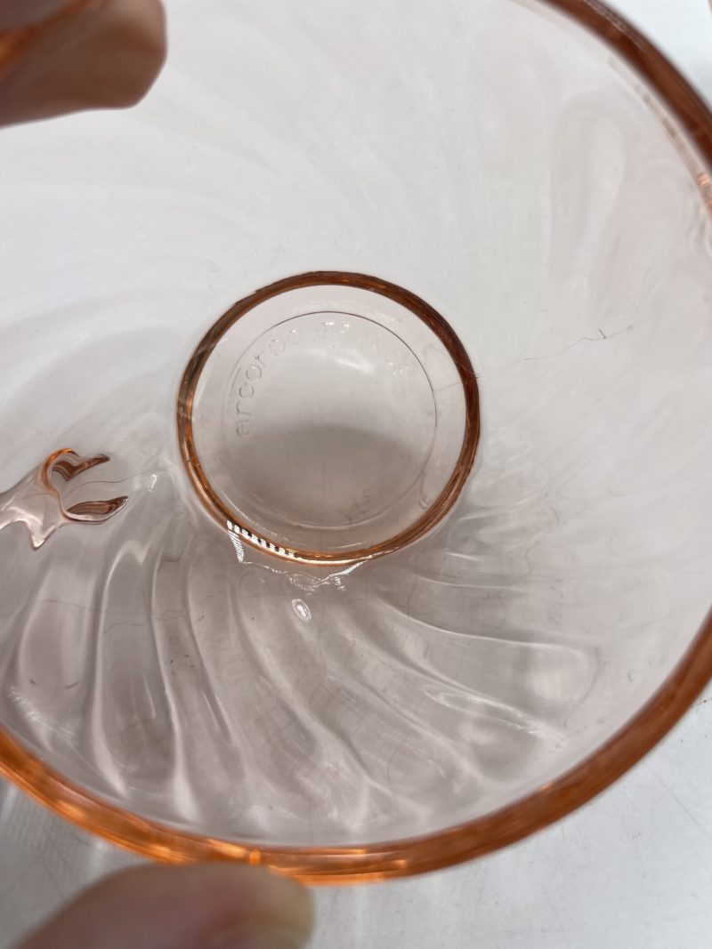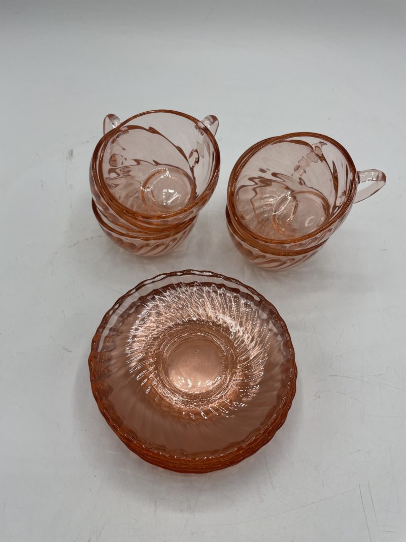 Service à café tasses et soucoupes vintage Rosaline Arcoroc verre rose