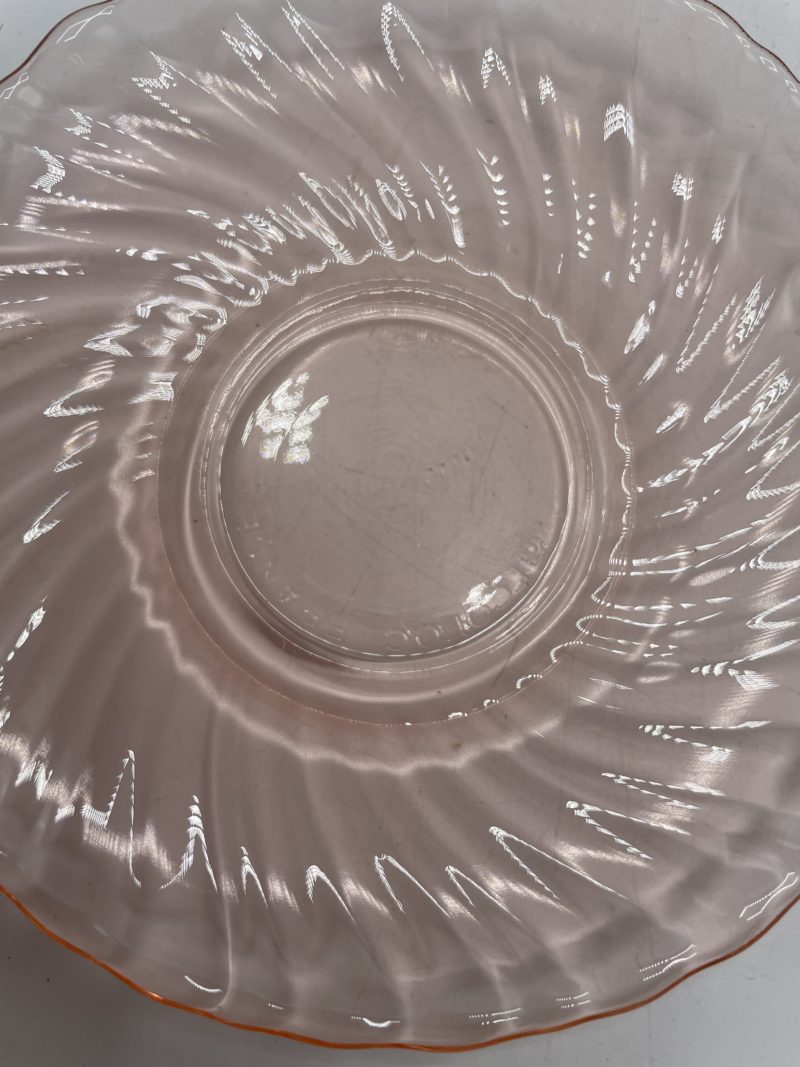 Avis à tous les amoureux de rosaline ! Comment résister face au charme de ce joli service à café ? Le service se compose de 6 tasses à café et de 6 soucoupes assorties. En verre de couleur rose, le service est estampillé Arcoroc France, et il est décoré de motifs d’ondes ou de vagues en relief. Vintage, le service est en bon état général. Un beau service à café à adopter !