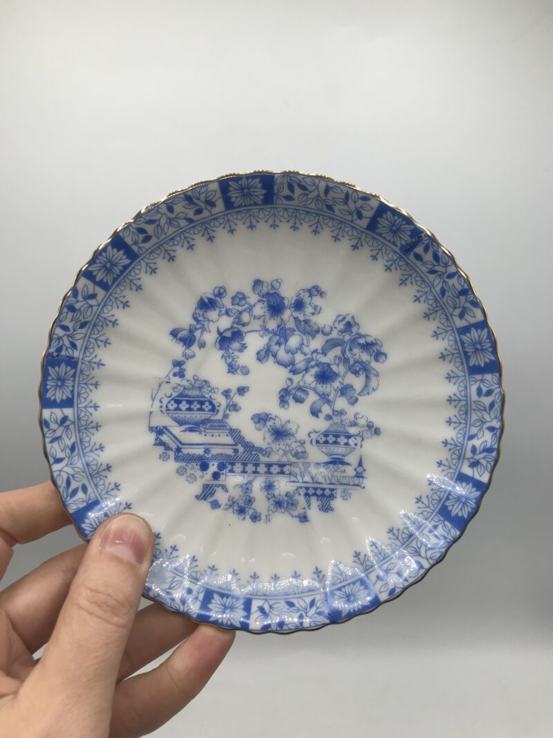 Service de vaisselle Bavaria Schumann. Joli service signé Bavaria Schumann pour la collection China Blau. Le service est de couleur blanche avec des beaux motifs sur le thème de la chine de couleur bleu. Il est composé de trois tailles d’assiettes. Les plus petites sont au nombre de 7, elles ont un diamètre de 15 cm pour une hauteur de 2 cm. Les moyennes sont au nombre de 6, elles ont un diamètre de 18 cm pour une hauteur de 2 cm. Et pour finir 2 assiettes de diamètre 19,5 cm pour une hauteur de 2 cm. Un petit dessous de plat de diamètre 16 cm, il est accompagné de trois coquetiers a croquer. Pour finir un superbe beurrier de forme ronde avec un couvercle. A noter des marques d’usure sur les motifs de certaines pièces (cf photos).