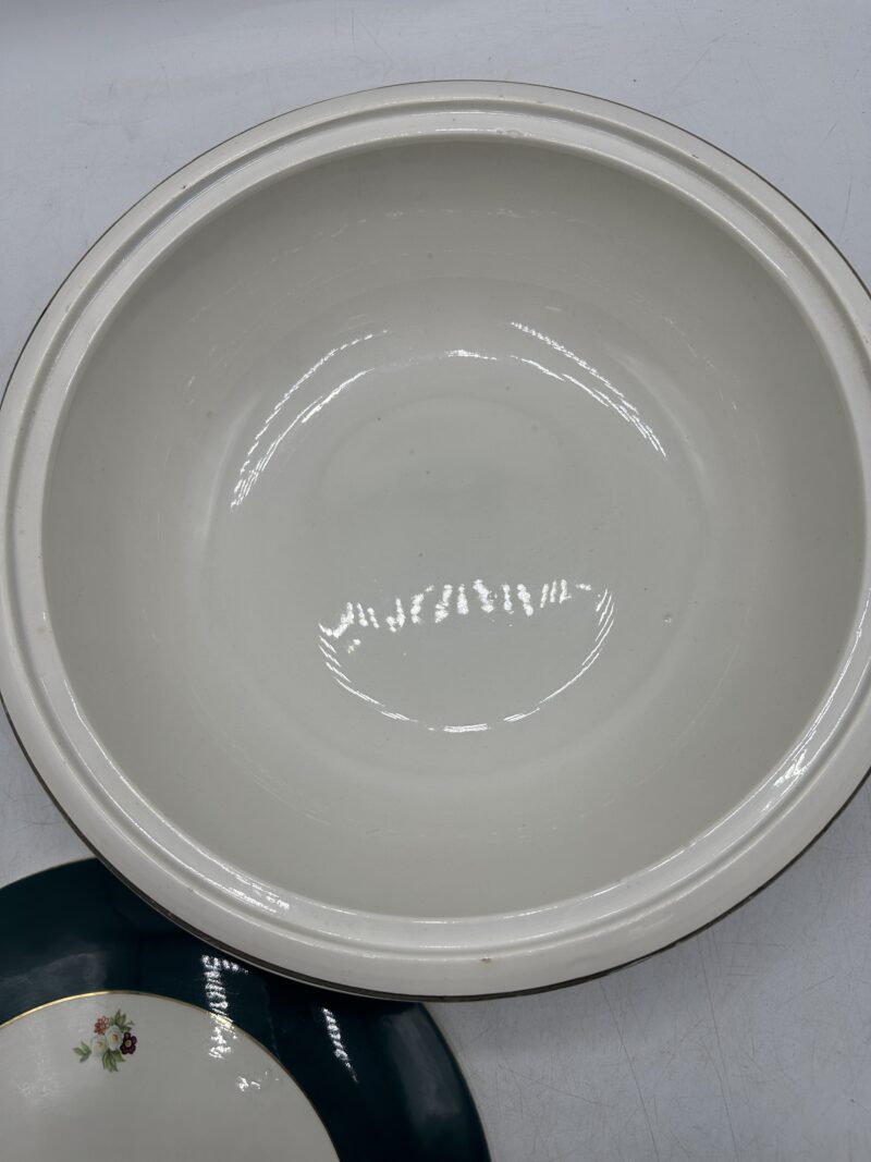 1 saucière, 2 soucoupes, 1 soupière, 1 saladier, 1 plat de présentation ovale, 1 assiettes semi-creuses, 2 plats ronds
