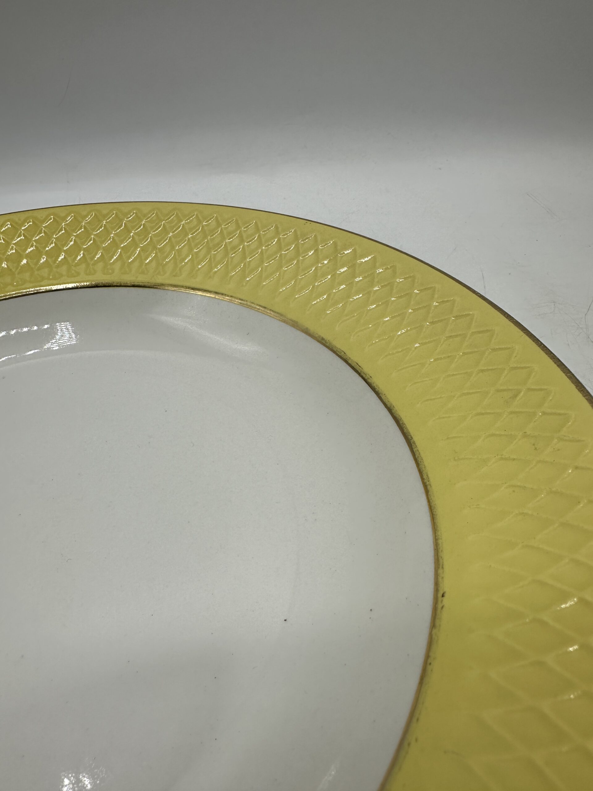 Sa teinte blanche, combinée à des touches de jaune et de liserés dorés, apportera lumière et raffinement à votre table.