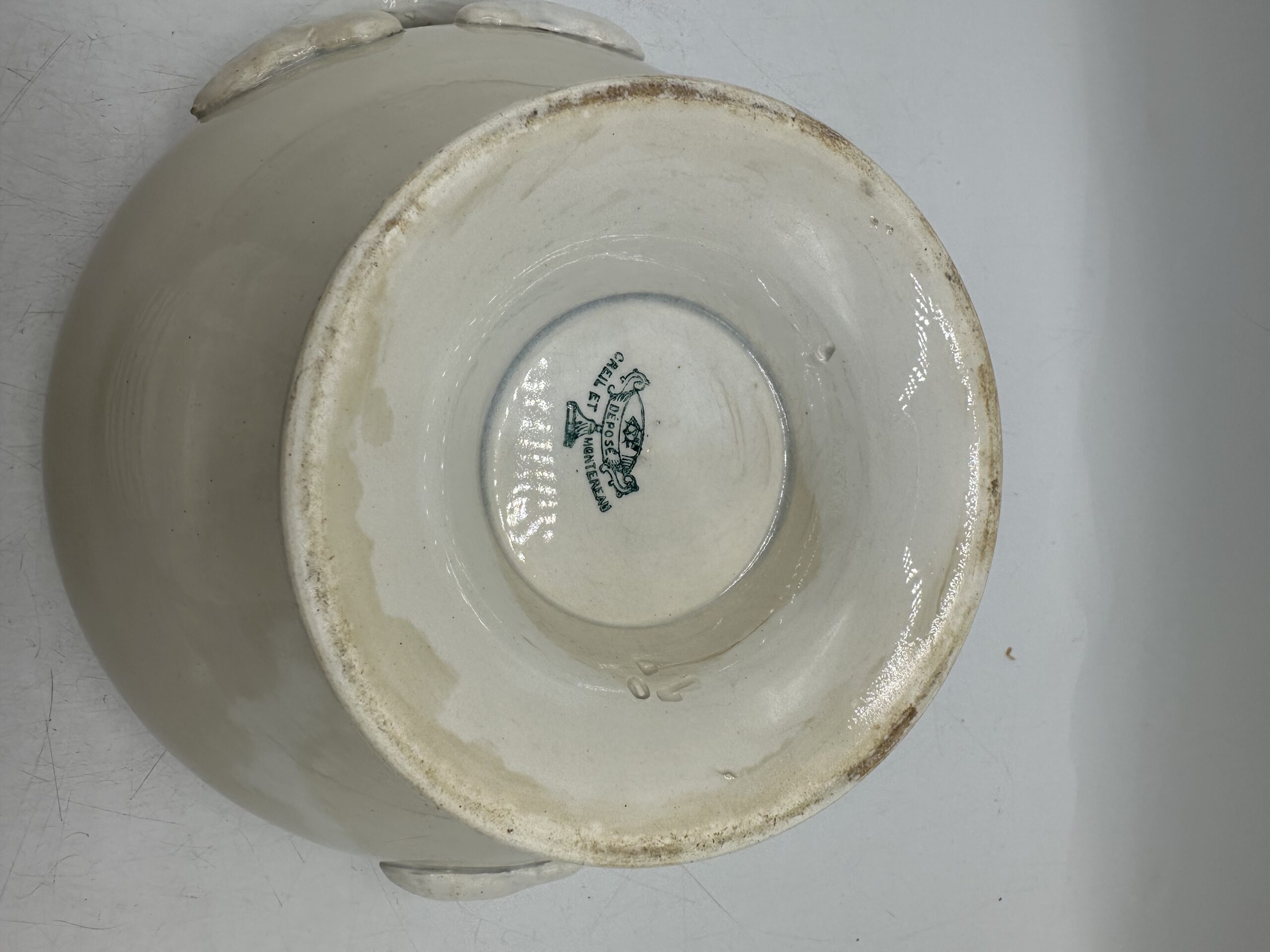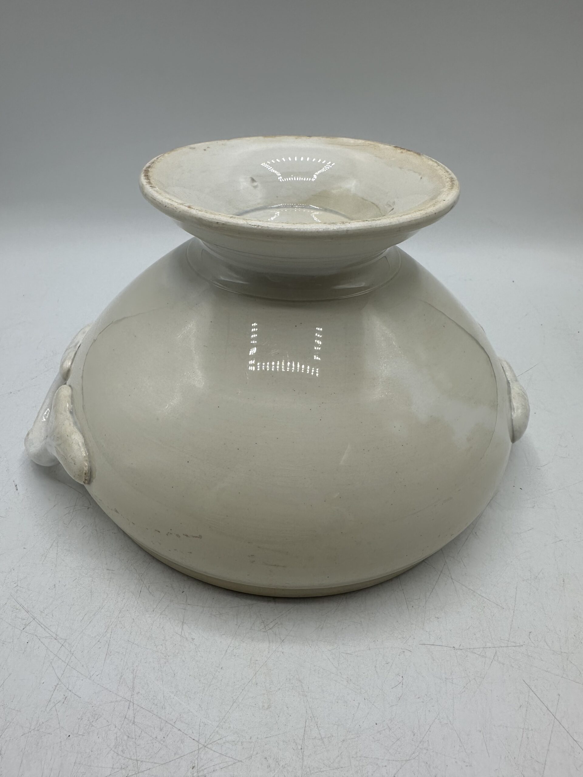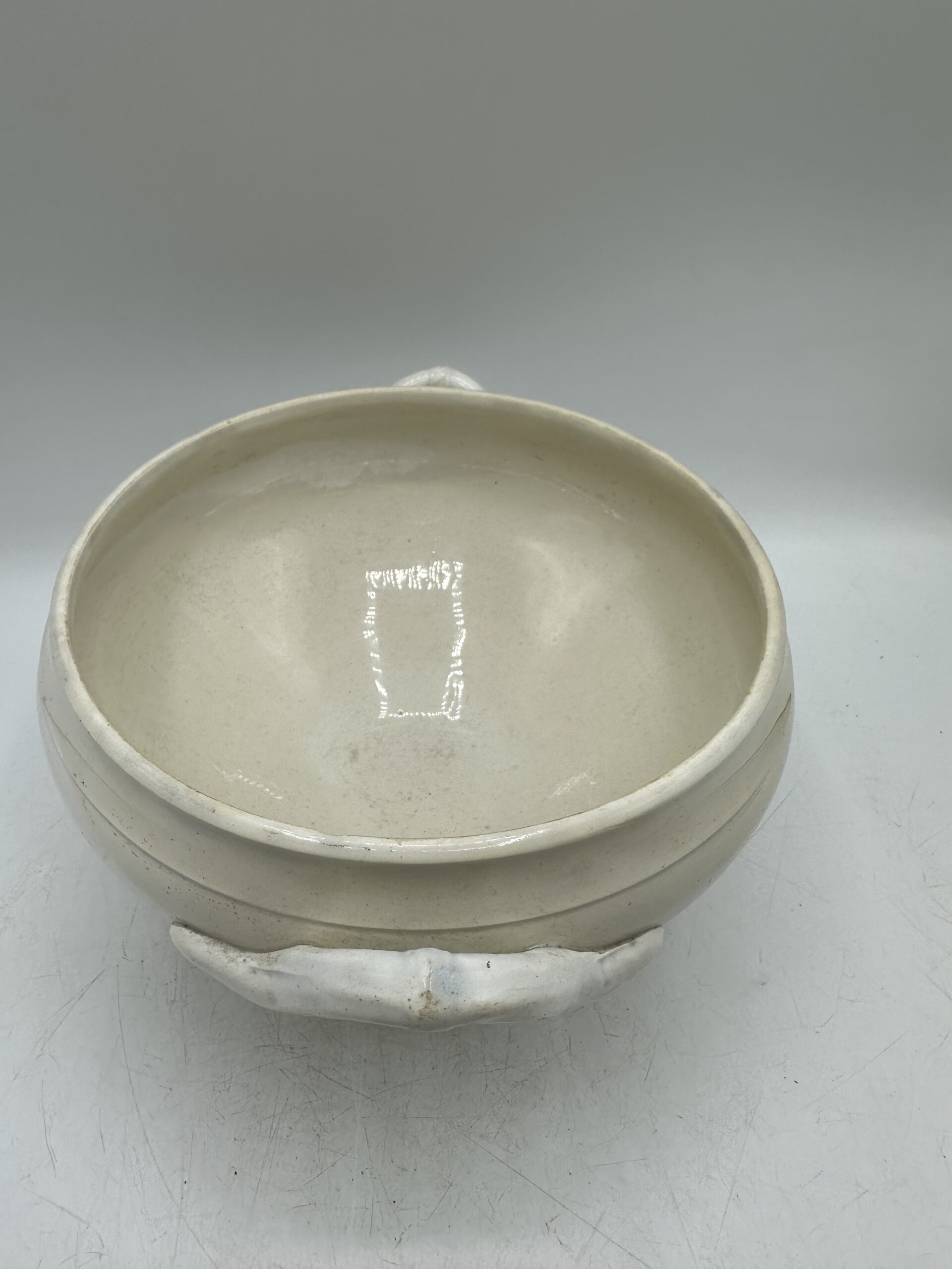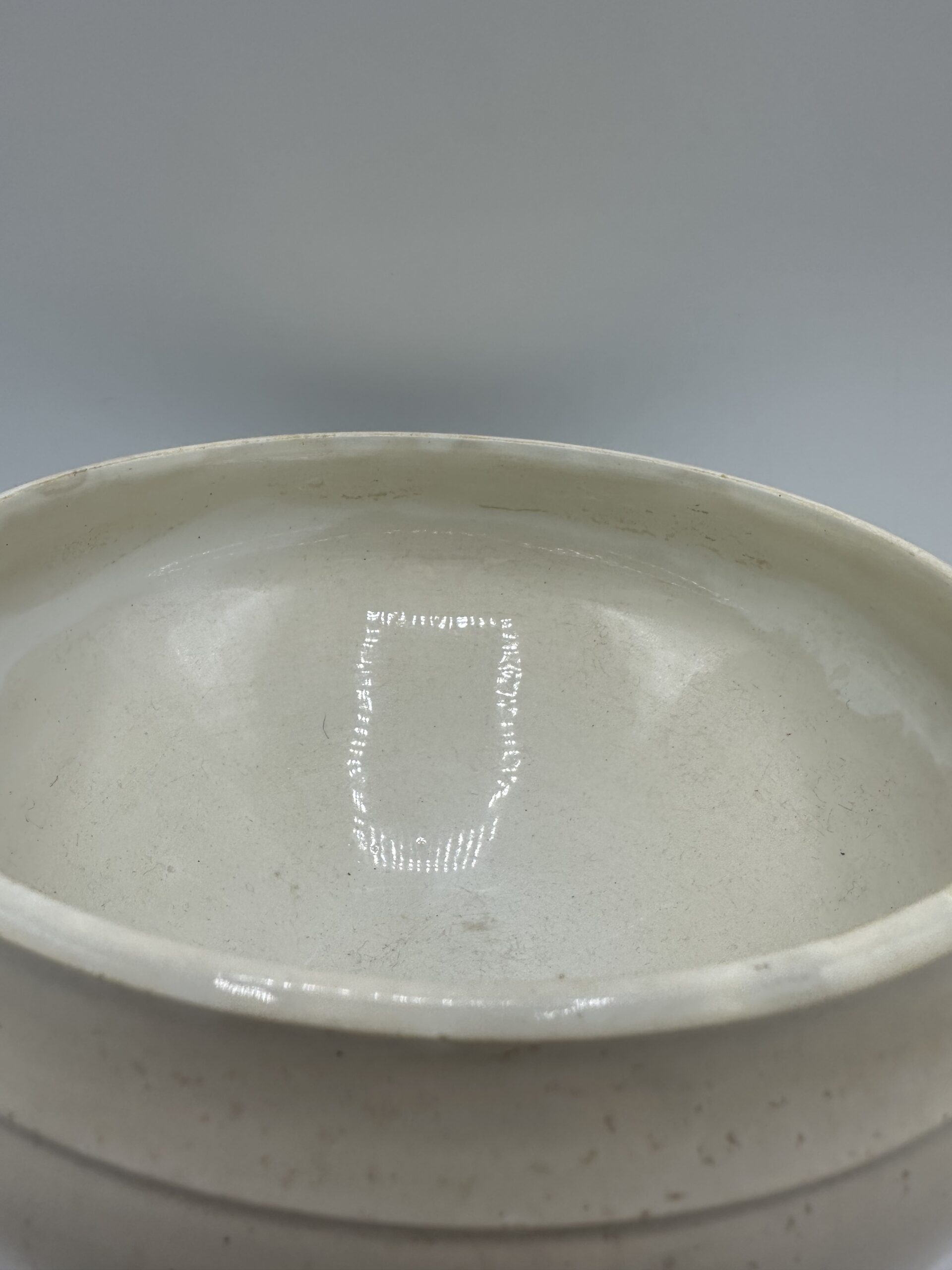 Cette soupière de couleur blanc cassé/beige est estampillée Creil & Montereau sur le dessous. Elle est en très bon état général sans casse ni fissures. ET une très légère patine à commencé à se déposer dessus.