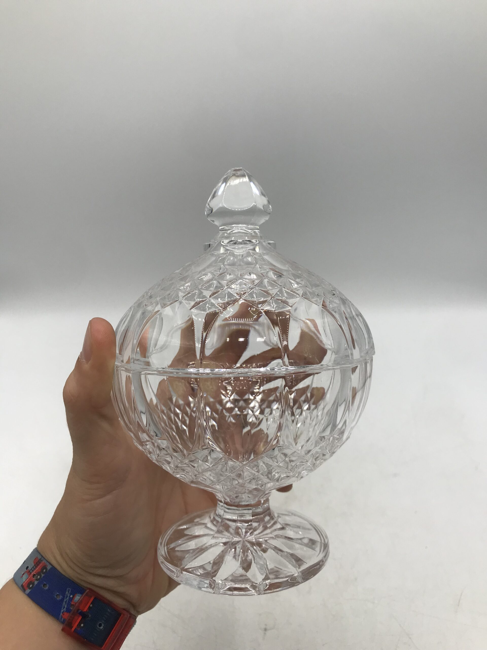 Sucrier en cristal vintage. Belle pièce de déco en cristal ciselé. Un sucrier qui peut aussi servir de bonbonnière pour les gourmands. Il est en très bon état. Un petit objet discret qui apportera class et grâce dans votre cuisine. De forme ronde posé sur un pied il se fera sa place sans problème. Sortez le à l’heure du gouter pour épater vos convives. Il vous accompagnera dans vos moments sucrés. Avis aux fans de cristal. Une belle idée cadeau également.