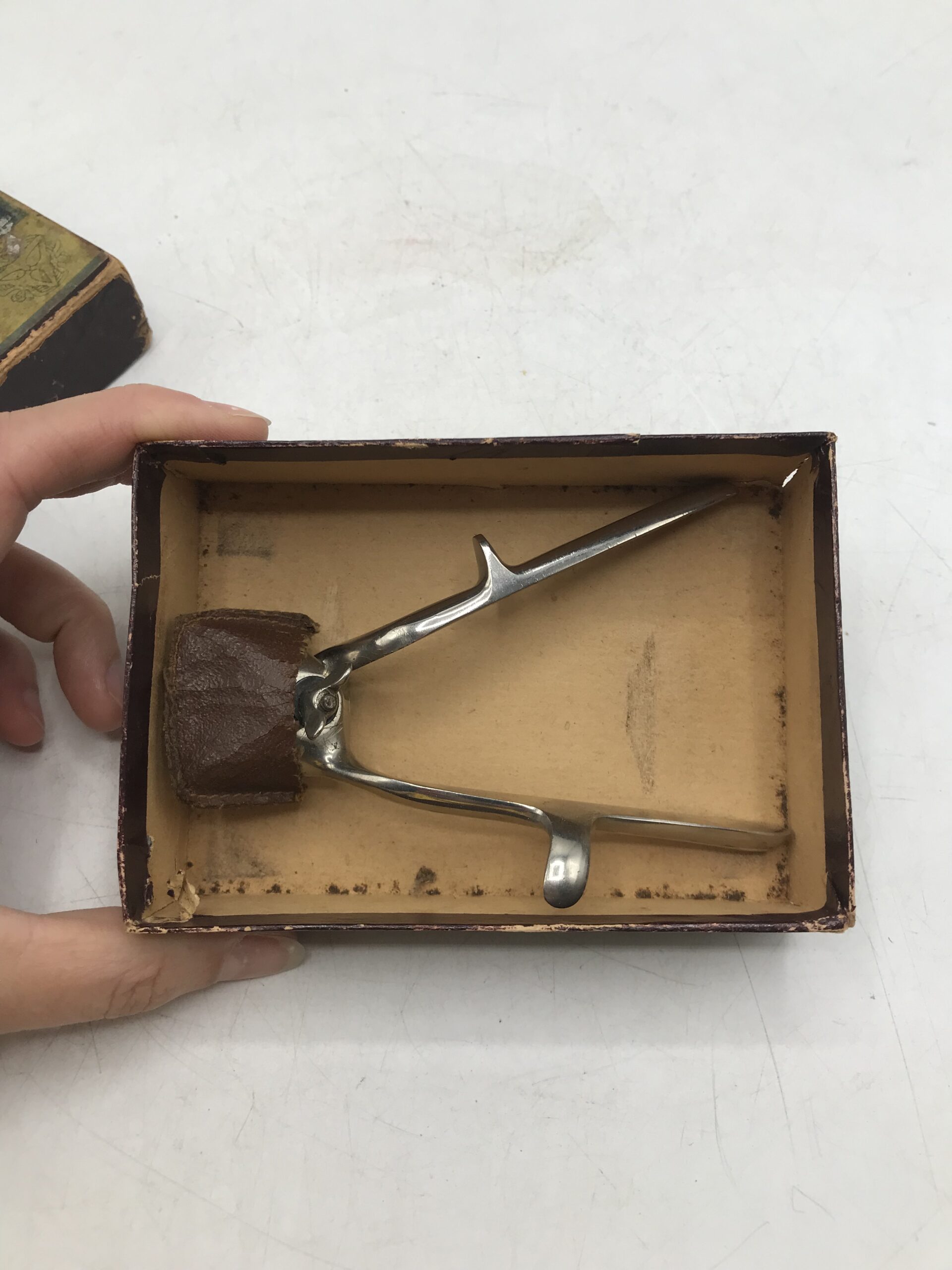 Tondeuse à cheveux manuelle « Pranafa » vintage. Petite tondeuse à cheveux de la marque Pranafa. Elle est en parfait état de fonctionnement. Elle est accompagnée de sa boite d’origine. Joli petit objet vintage pour compléter une vitrine d’un barbier ou tout simplement pour reprendre du service. Facile à manipuler elle pourra rafraichir votre coupe rapidement. Avis aux coiffeur en herbe ou coiffeur confirmé. Cette petite tondeuse vous fera craquer.