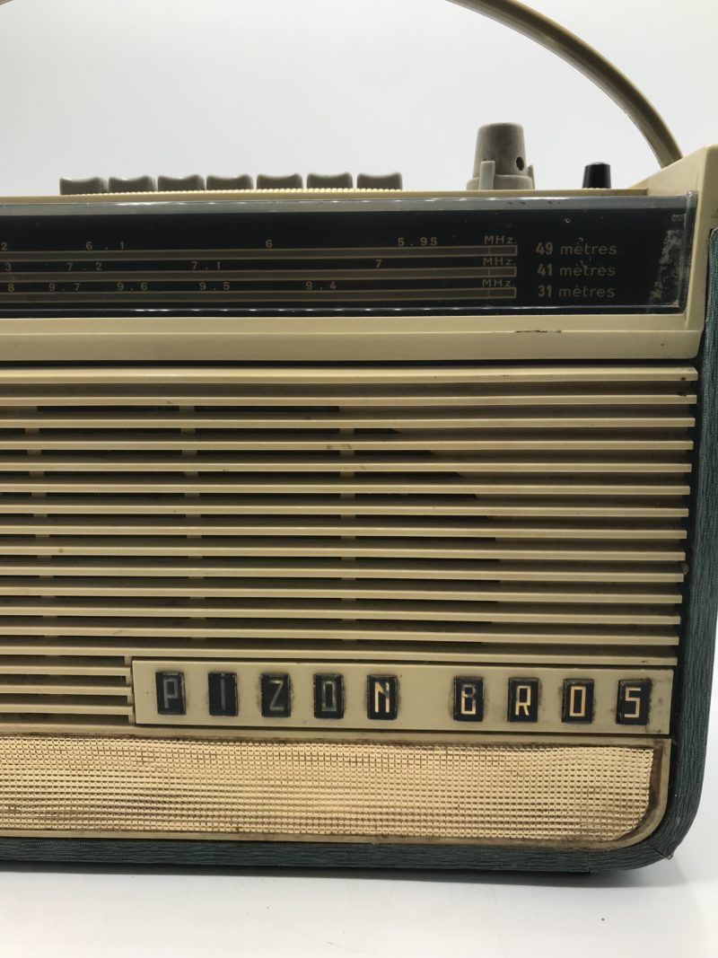 Ancienne radio Pizon Bros, modèle super seven. De couleur dorée et vert bouteille ce qui lui donne de l’allure. Produit non testé donc sa première destination serra un objet de décoration. Si des bricoleurs veulent si frotter n’hésitez pas, vous aurez peu être une bonne surprise. Un beau souvenir des appareils anciens.