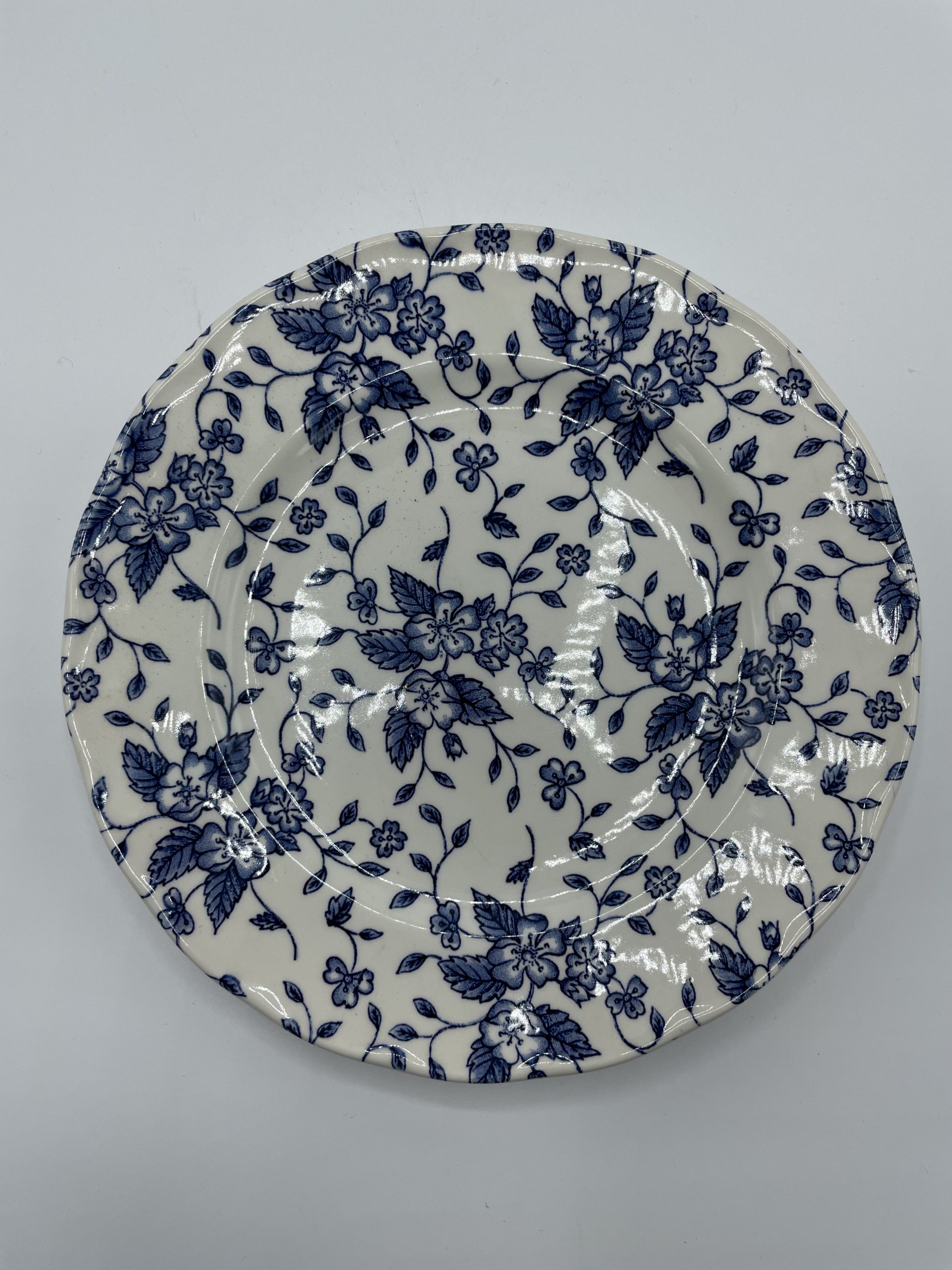 Ce joli trio d’assiettes à dessert vintage est estampillé Royal Tudor. Les assiettes sont décorées avec un motif de fleurs bleues à l’esprit très anglais et romantique. Quelques traces d’usure sont à prévoir (cf photos) jolies marques du temps passé. Un joli trio d’assiette à la fois romantique et intemporel parfait pour présenter vos cakes et autres desserts !