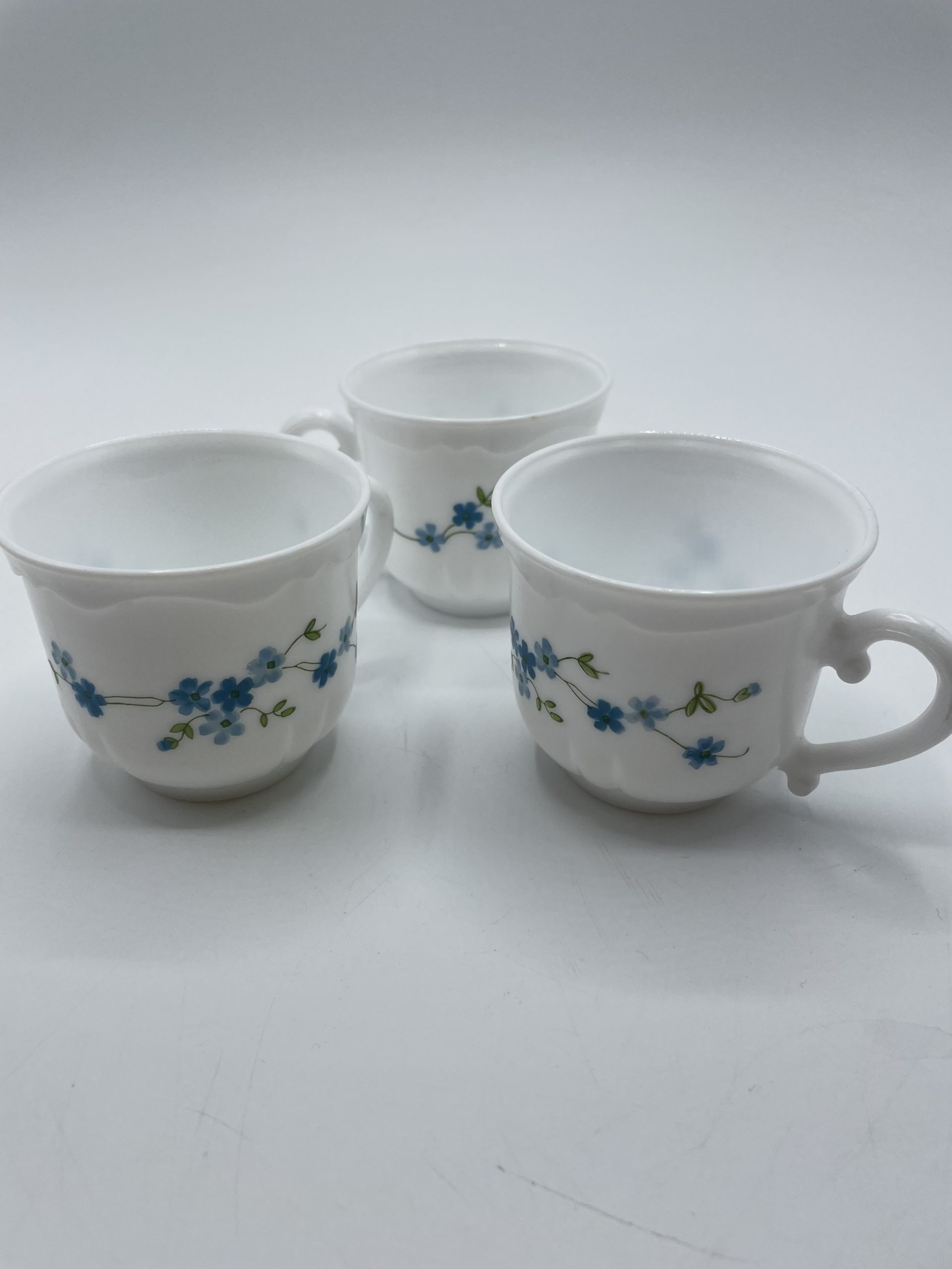 On craque d’amour pour ce joli trio de petites tasses à café. Estampillées Arcopal, les tasses sont décorées avec le célèbre décor de petites fleurs bleues. En bon état général, ces jolies petites tasses sont à la fois champêtres et intemporelles ! De magnifiques petites tasses d’amour !
