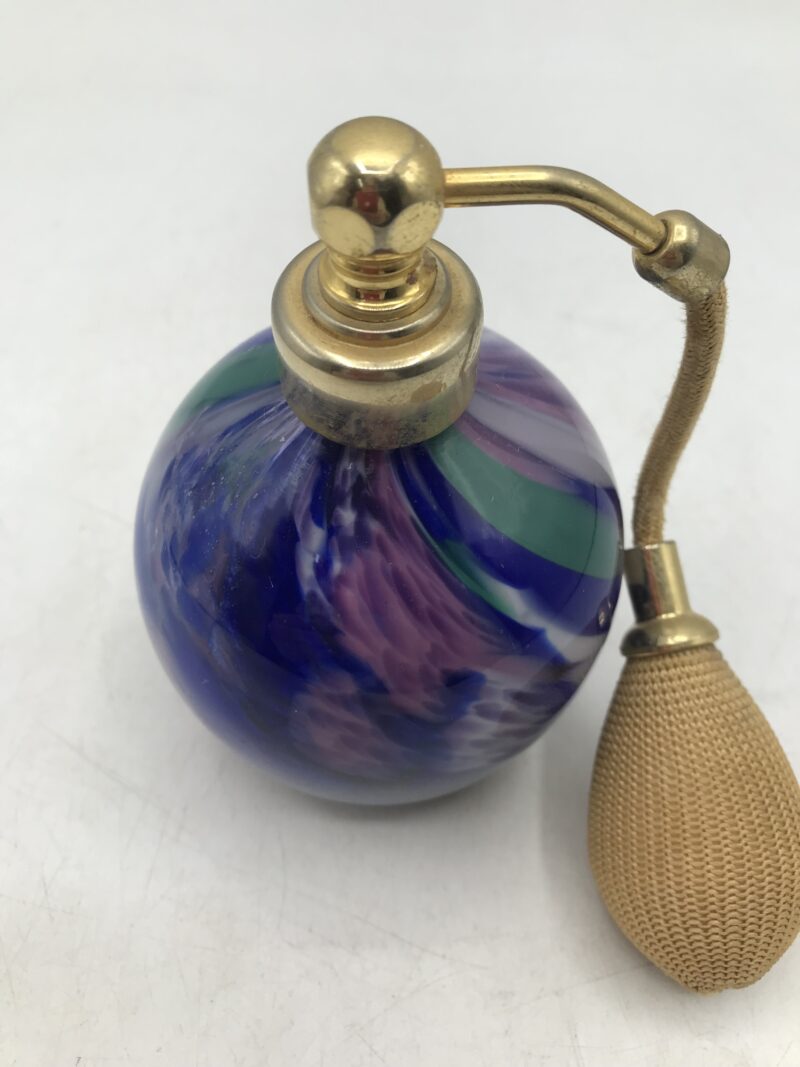 Vaporisateur de parfum vintage. Petit objet charmant et décoratif. Vendu en l’état la partie vapo est décollée de la partie flacon. Il aura besoin d’être recoller pour être utilisé à nouveau. Un magnifique objet qui arbore des couleurs profondes de bleu, rose et vert. Petit clin d’œil du temps passé et du bon gout. Laissez vous séduire par ce vaporisateur. Il ne demande qu’a être exposé et retrouver toute sa superbe.