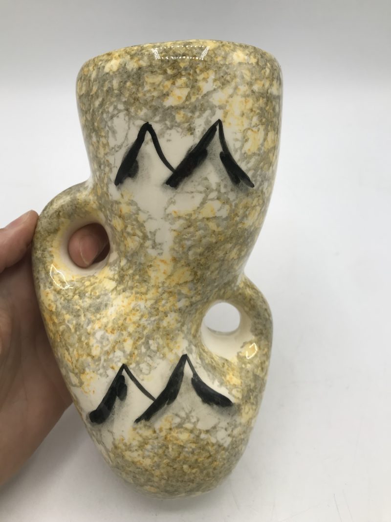 Petite pépite, ce petit vase en céramique signée année 50, arbore de magnifiques dessins scandinaves. Parfait pour une touche d’exotisme, avis aux amoureux d’animaux que l’artiste aimais à représenter. Sont état est parfait rien à signaler sur cette piece.