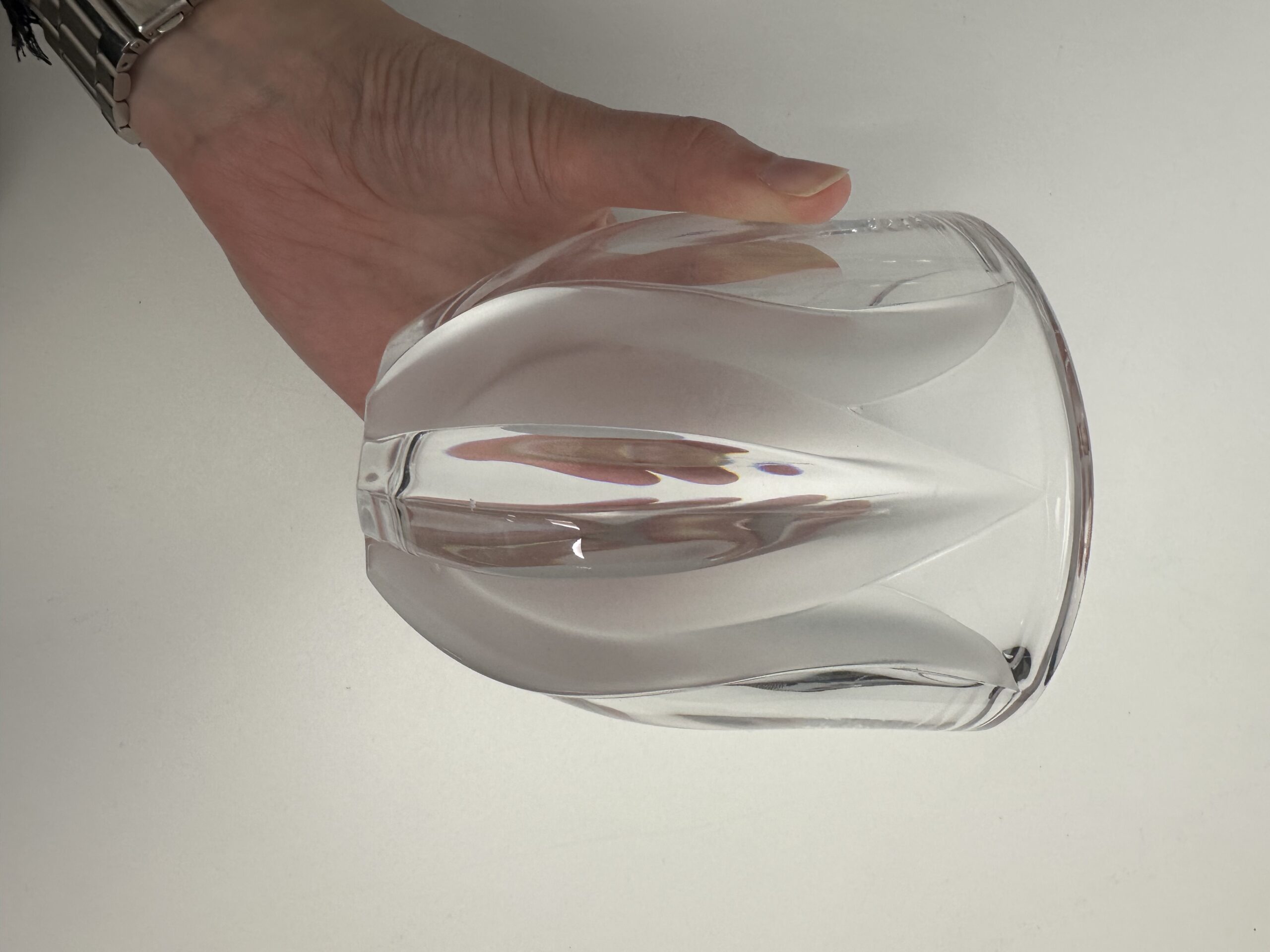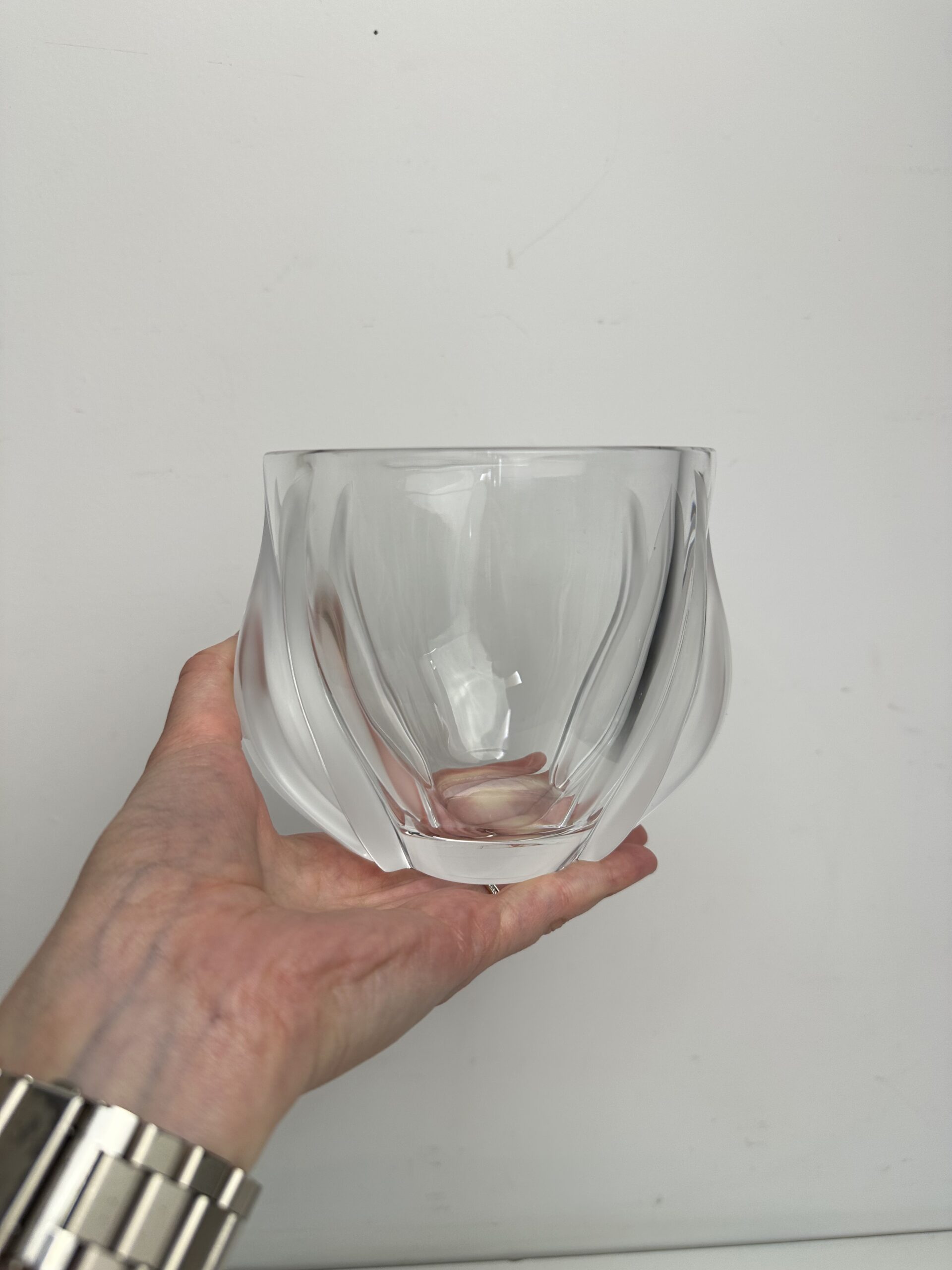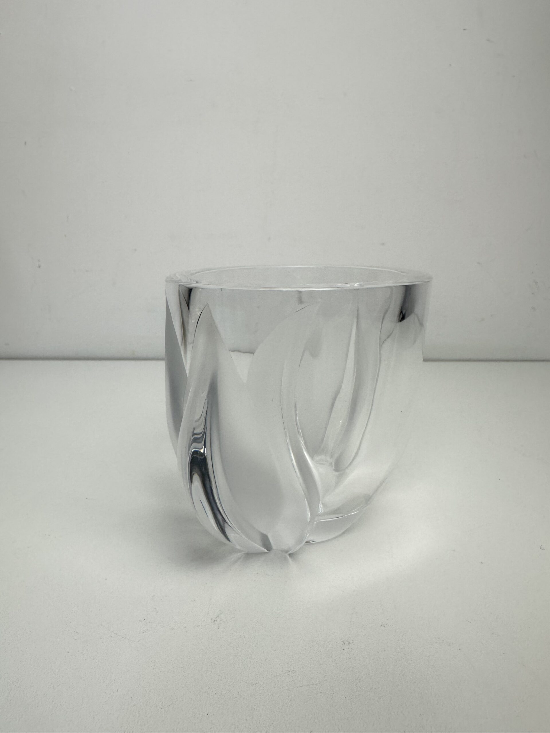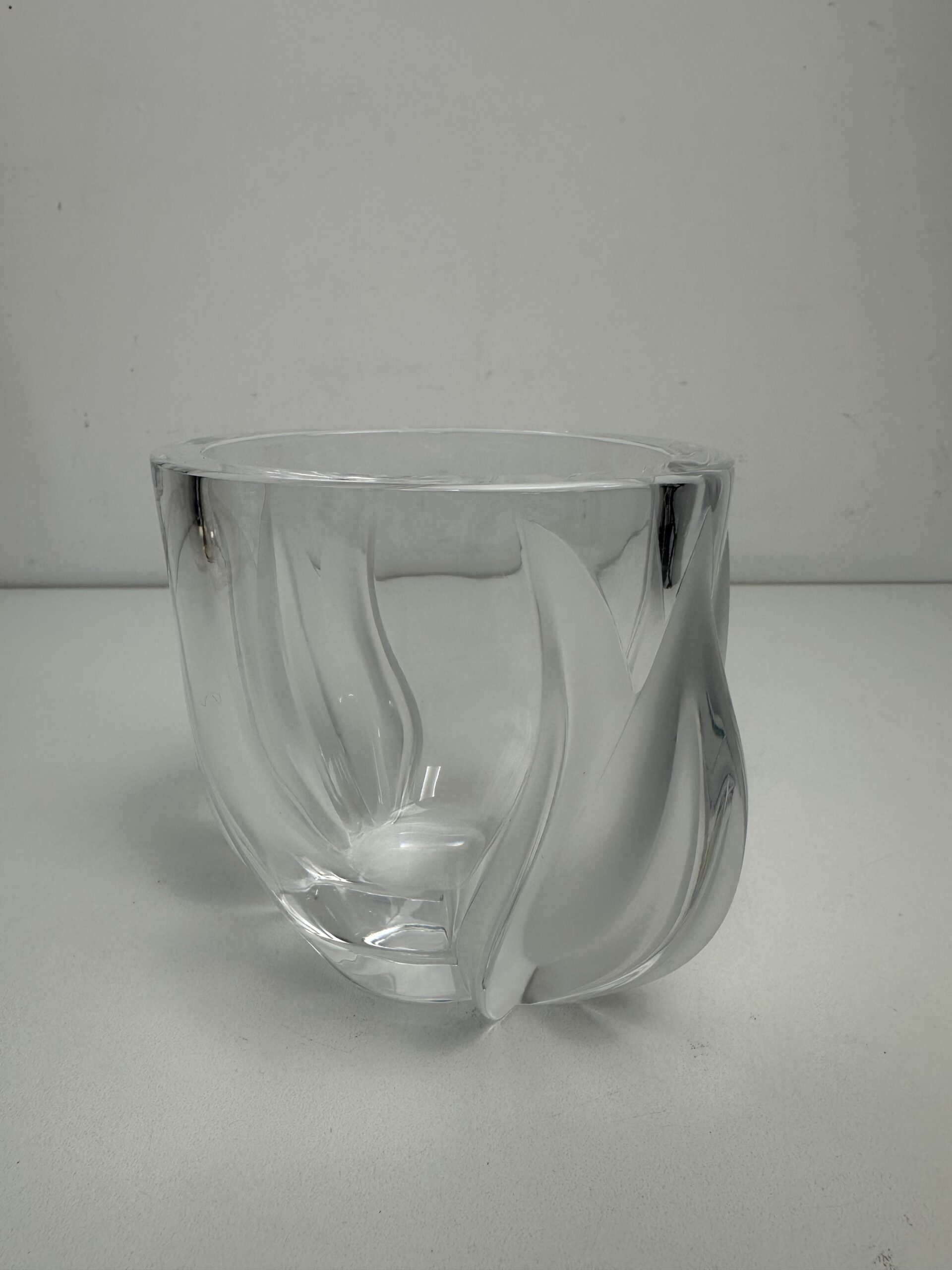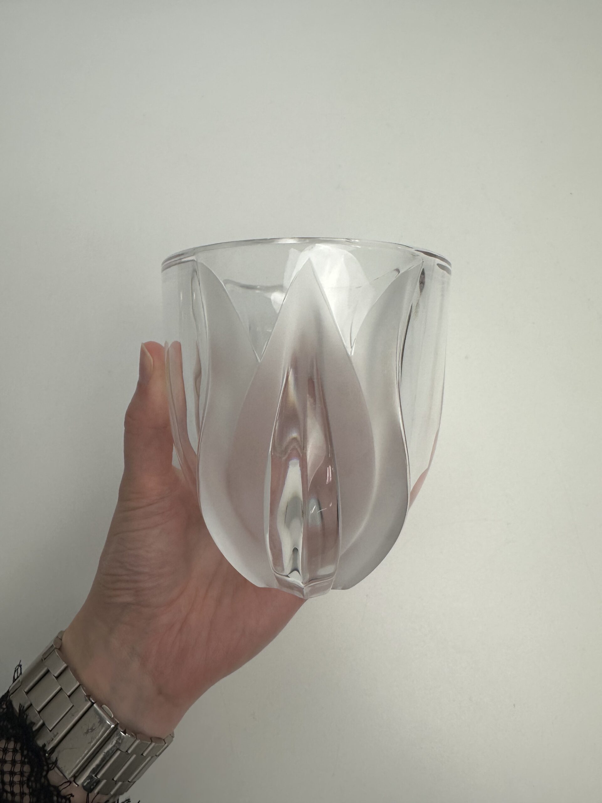 Ce modèle-ci arbore un décor en relief qui représente deux tulipes aux extrémités du vase en cristal d’aspect mat. Ce qui créé un magnifique jeu de lumière et de texture.