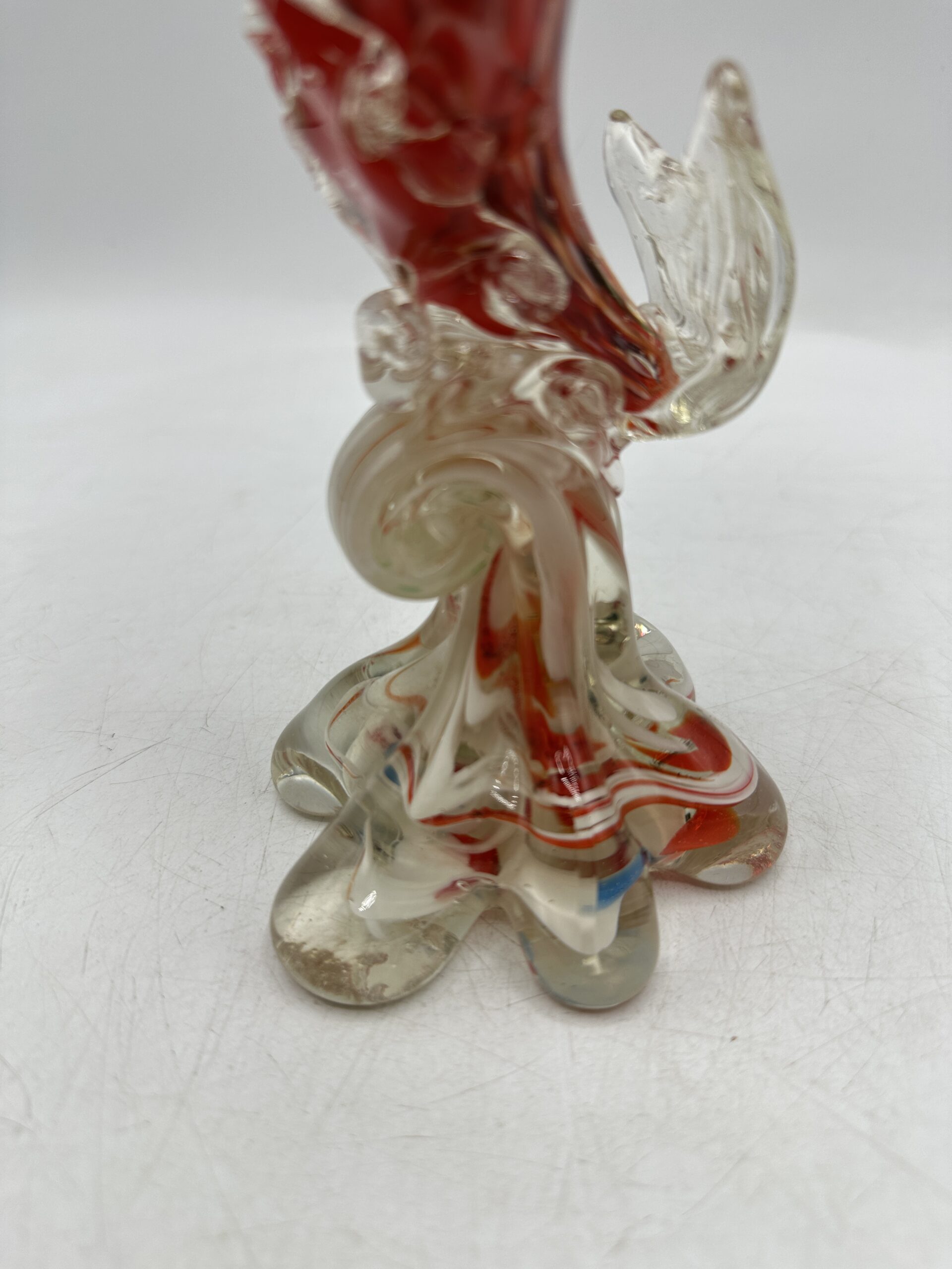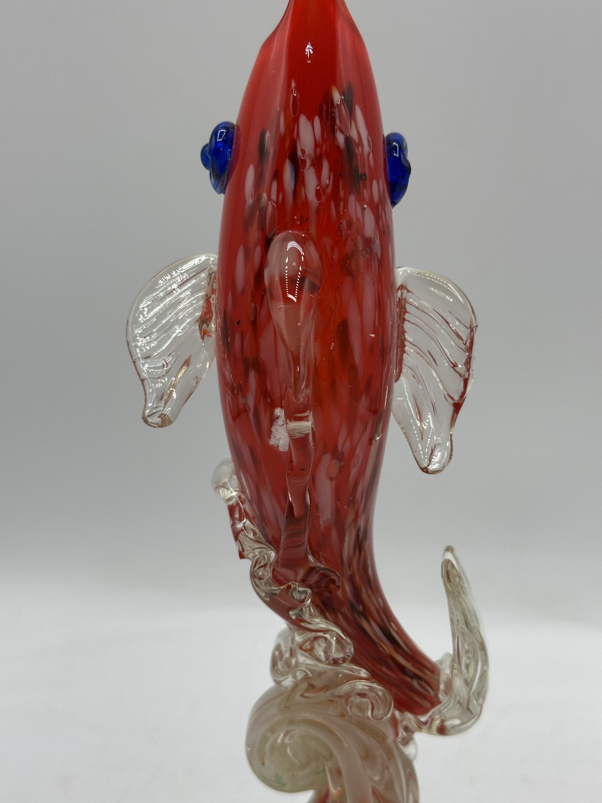 Le vase soliflore statue poisson style Murano est en très bon état, seule une nageoire est endommagée (voir photo).