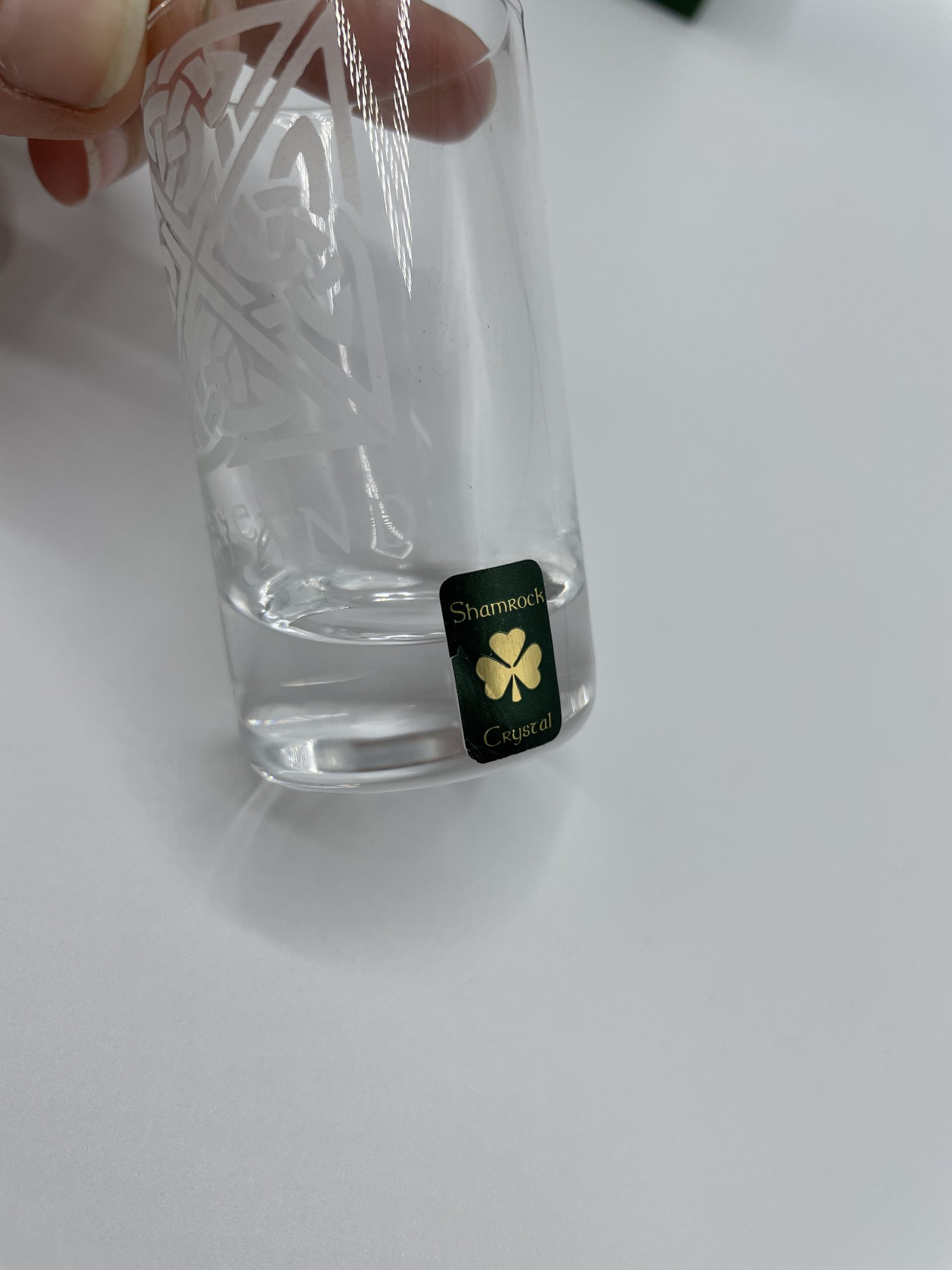 Ce joli petit verre à shot est en cristal. Originaire d’Irlande, ce verre à shot est estampillé Shamrock Crystal, du même nom de la manufacture. Les verres à shot Shamrock Crystal sont ciselés à la main avec des symboles issus de la culture et du folklore Irlandais, et ce sont donc des objets uniques. Ce verre à shot est donc décoré d’un motif celtique. Dans sa boite d’origine, ce verre à shot sera parfait pour vos digestifs ou pour une belle soirée entre amis !