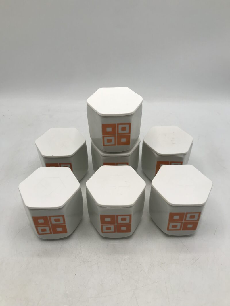 Yaourtière Yalacta vintage. Jolie petite yaourtière vintage qui apportera du peps dans votre cuisine. Elle témoigne d’un temps passé ou les appareils marchaient sans électricité et c’est pas plus mal vu le prix actuelle de cette dernière. La yaourtière fonctionne sur un système simple et mécanique. Elle est en bon état général mais présente une petite casse au niveau du plastique ( cf photos) ce que n’empêche en rien son utilisation. Elle est fournie avec 7 petits pots de forme octogonale au charme fou. Ils sont décoré de forme géométriques qui nous replonge dans les années 60/70. Un petit nettoyage et hop elle sera prête a reprendre du service. A vous les bons yaourts fait maison.